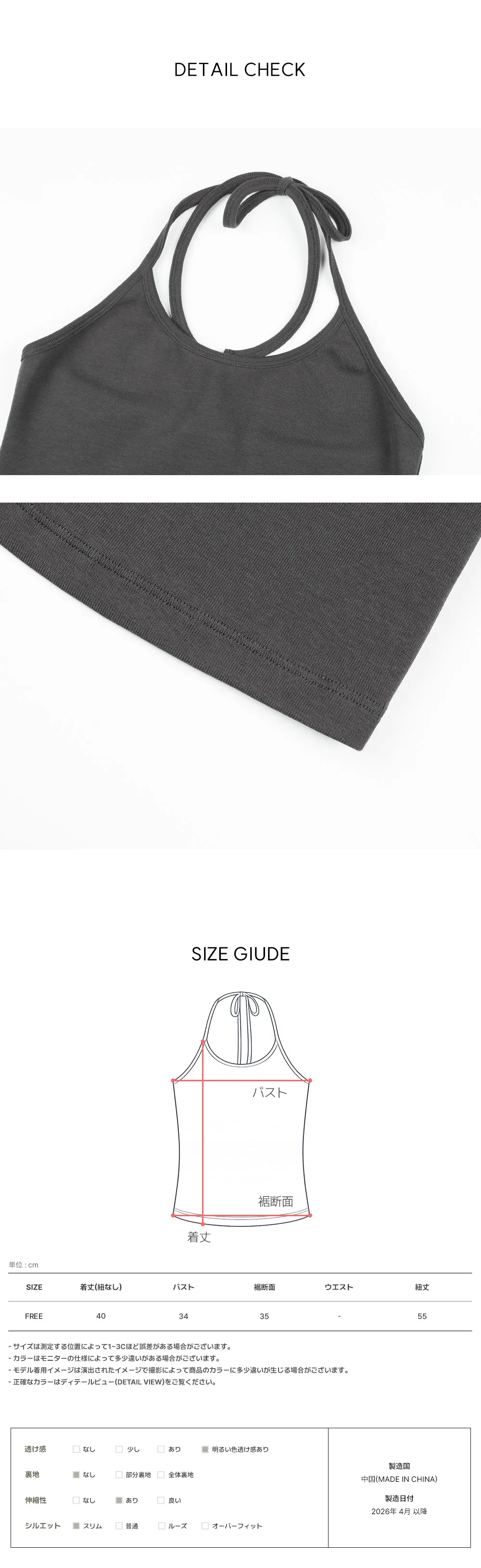 着用 : チャコール / FREE