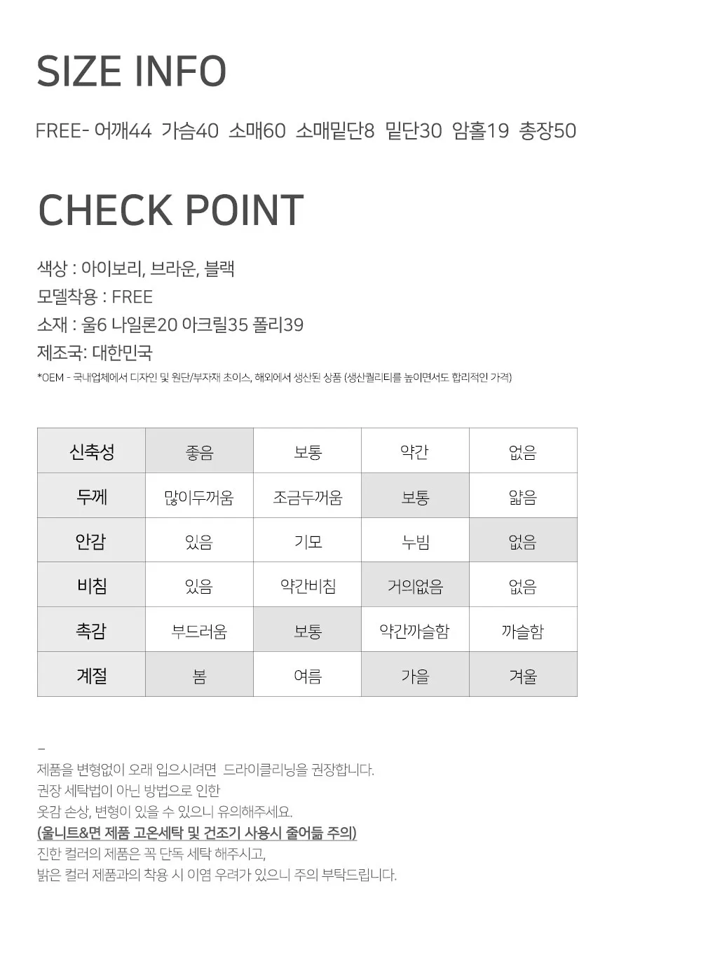 着用 : アイボリー / FREE