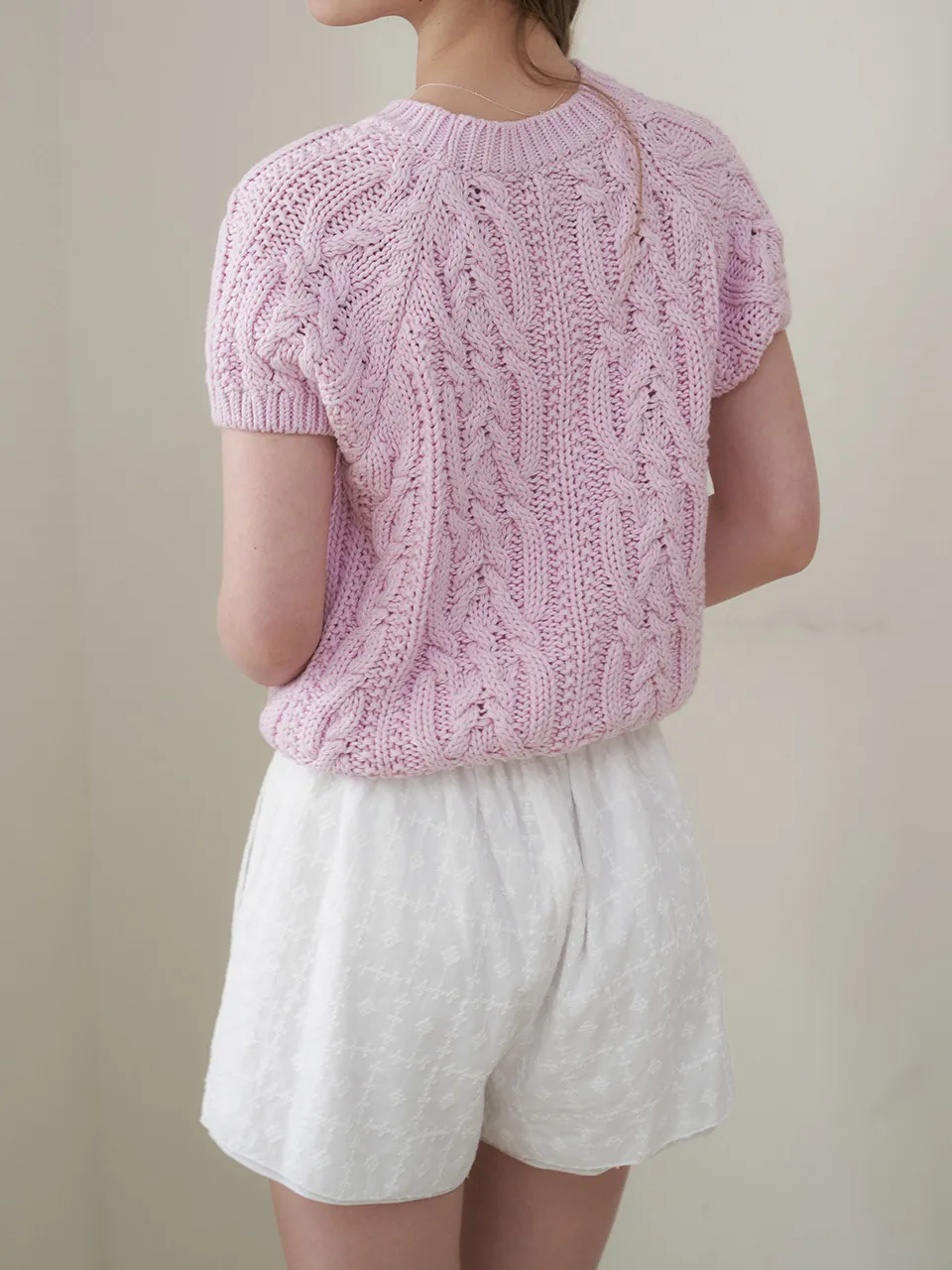 レースジャガードコットンポケットバックゴムショートパンツストラップ付・S1965326