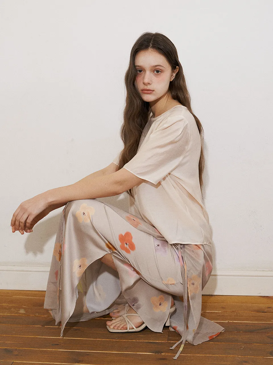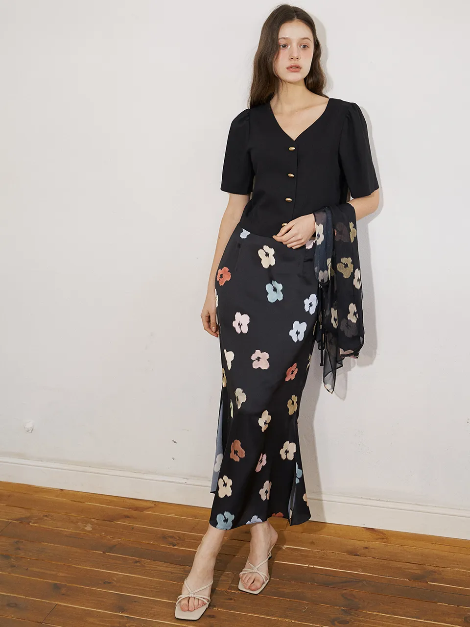 スリットロングマーメイド花柄スカート