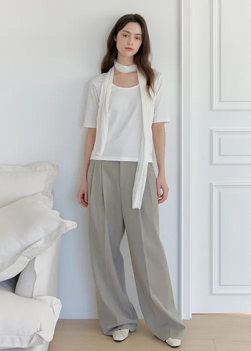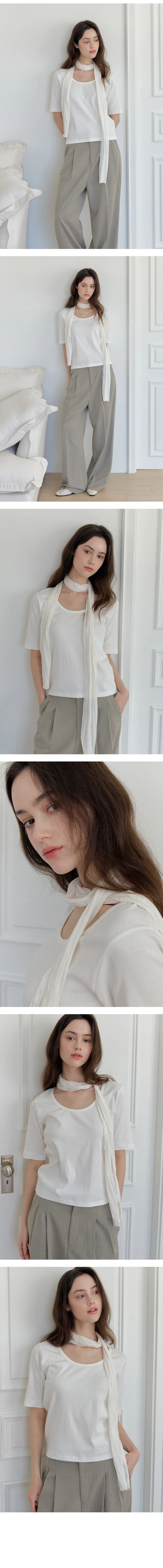 肩まわりをやさしく見せるUネックデザインで、女性らしいシルエットを引き立てるTシャツセット。