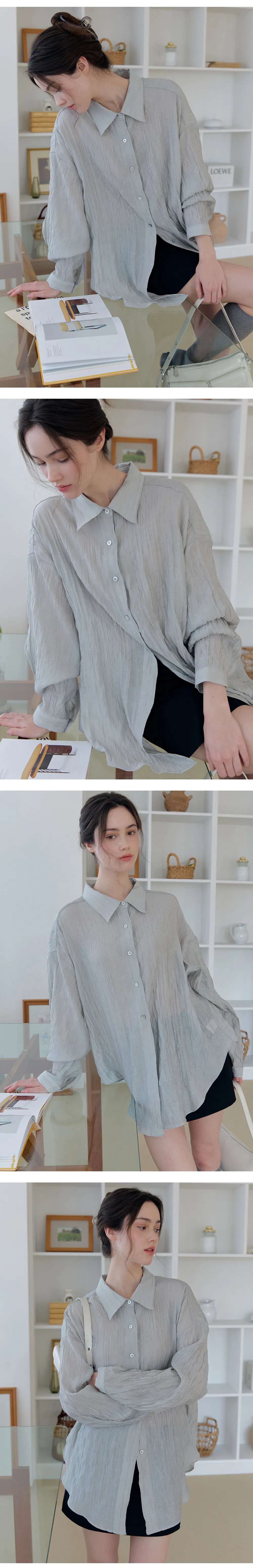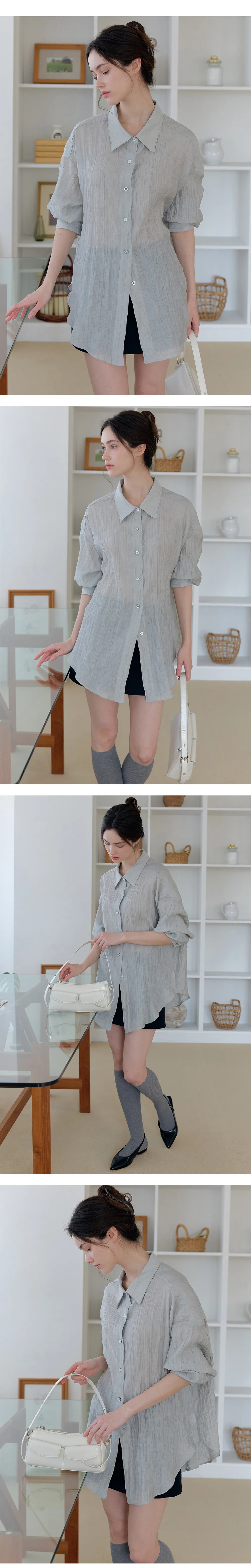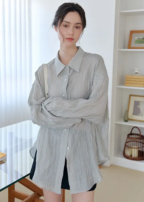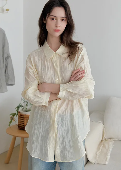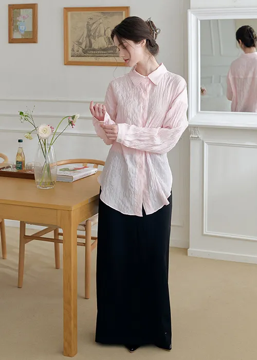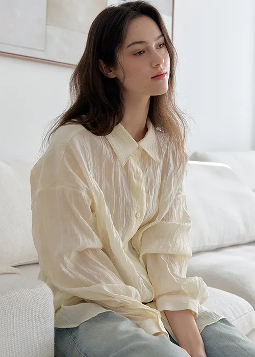 軽やかに流れるやわらかな素材感に、ほんのりとした透け感をプラスすることで、女性らしさと上品さを兼ね備えた雰囲気に。