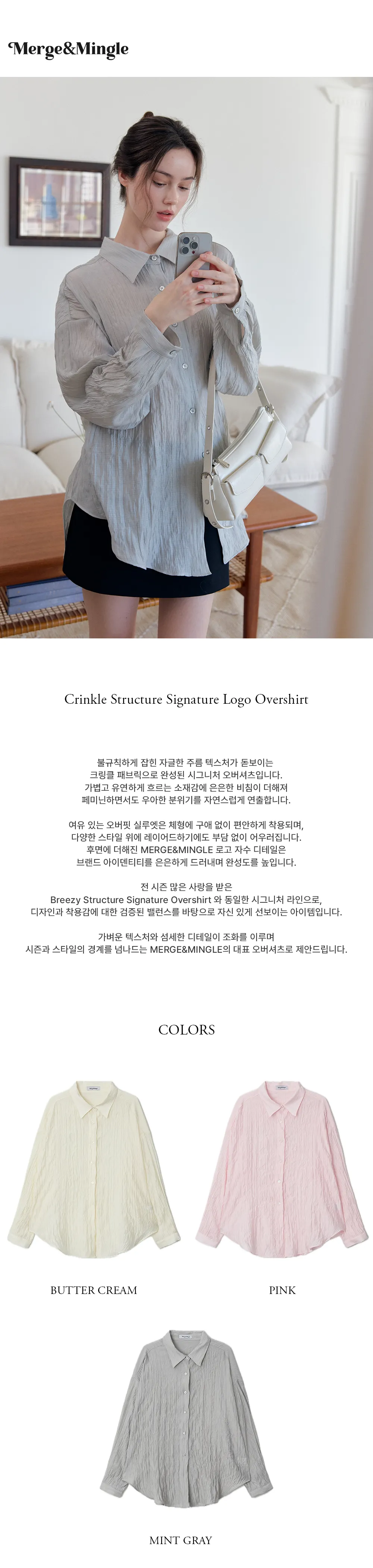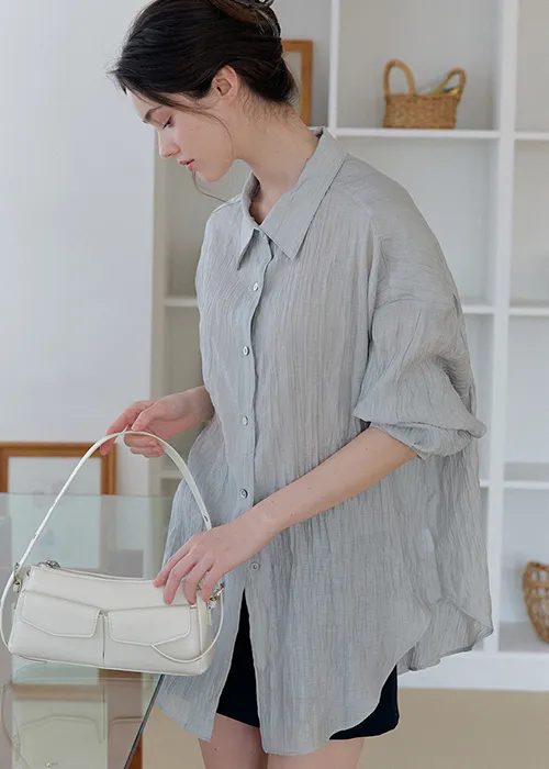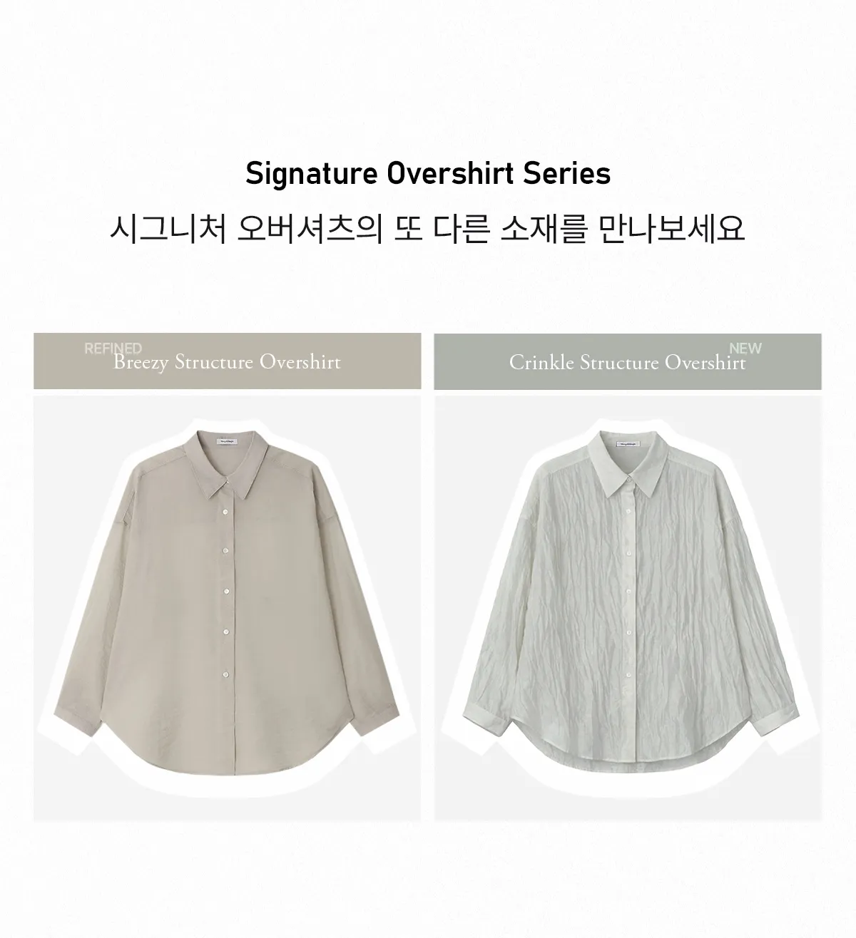 不規則なシワ感が魅力のクリンクル素材で仕立てた、シグネチャーオーバーシャツ。