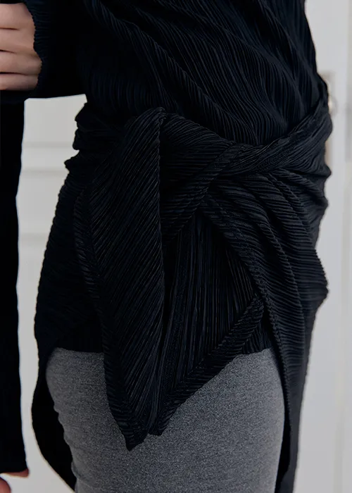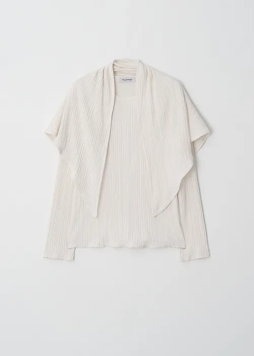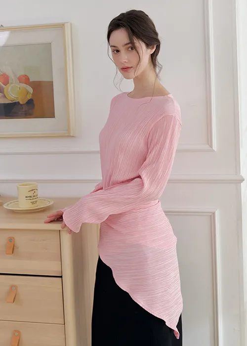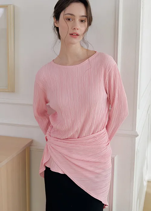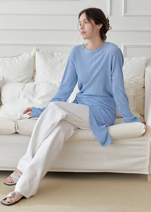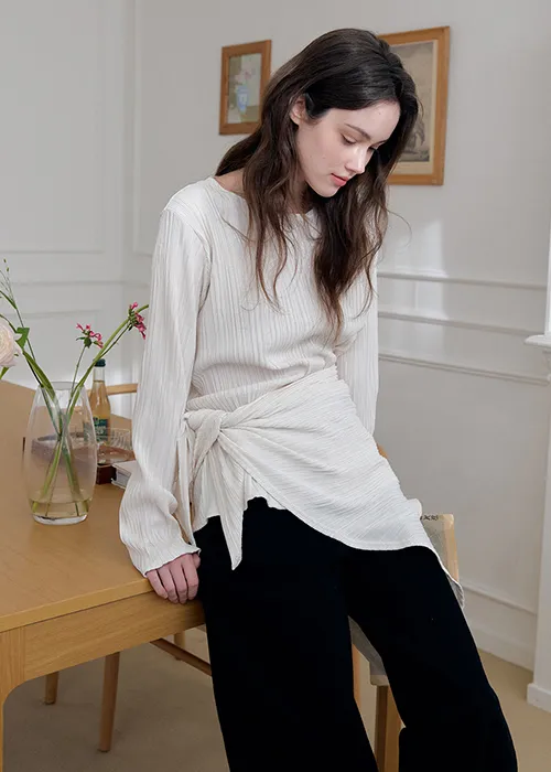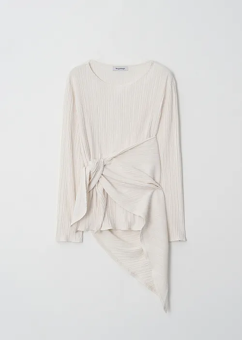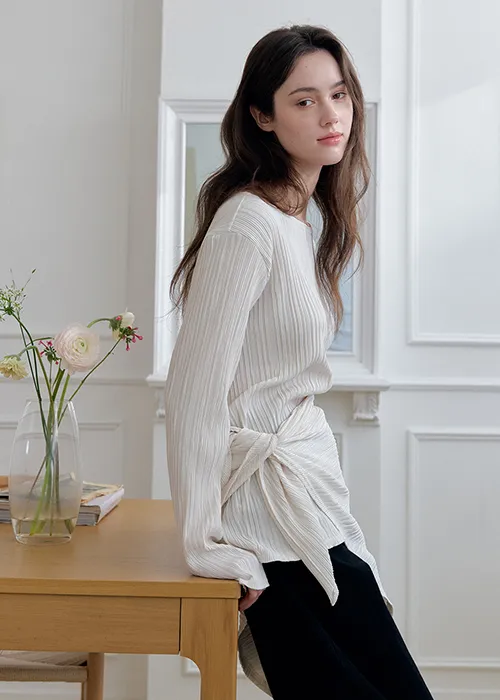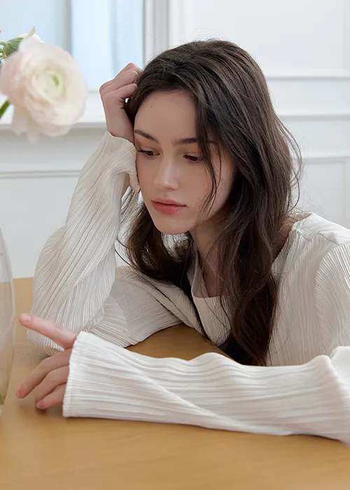 繊細なプリーツテクスチャーで仕立てた、長袖のティーブラウス。