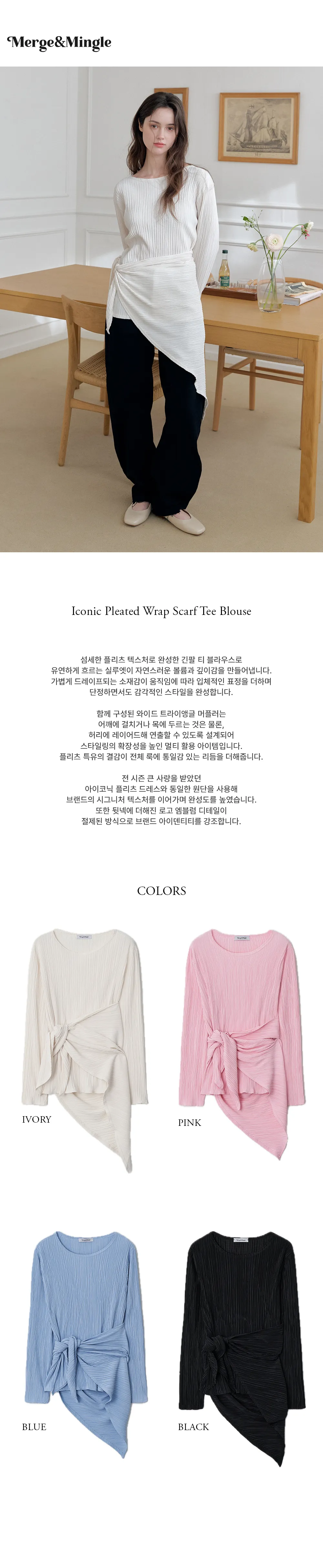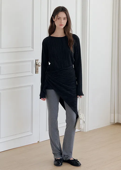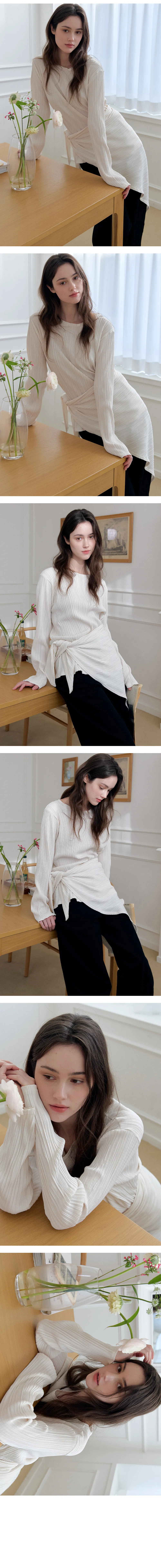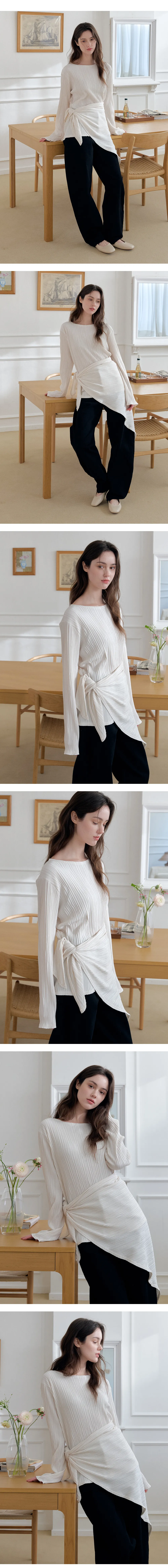 繊細なプリーツテクスチャーで仕立てた、長袖のティーブラウス。