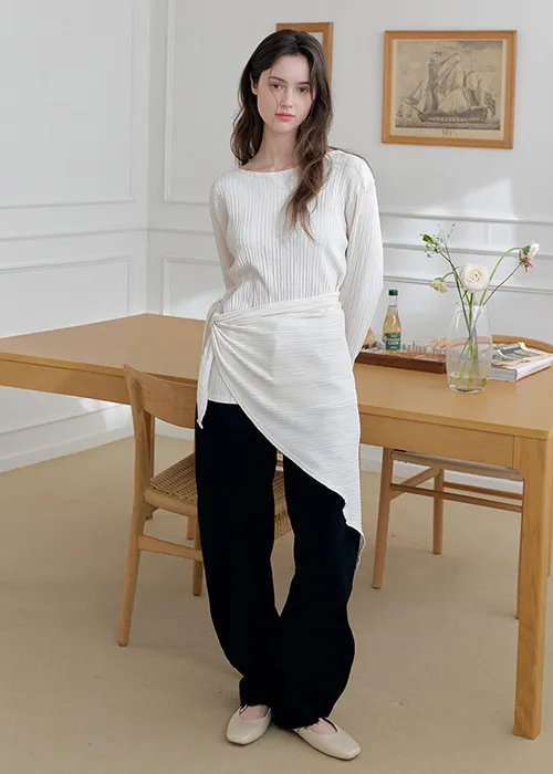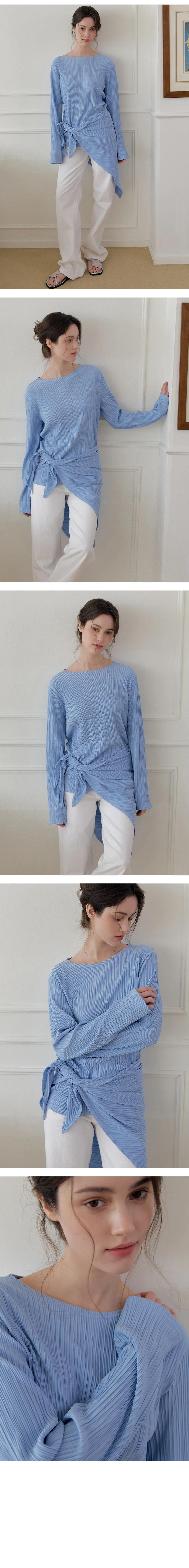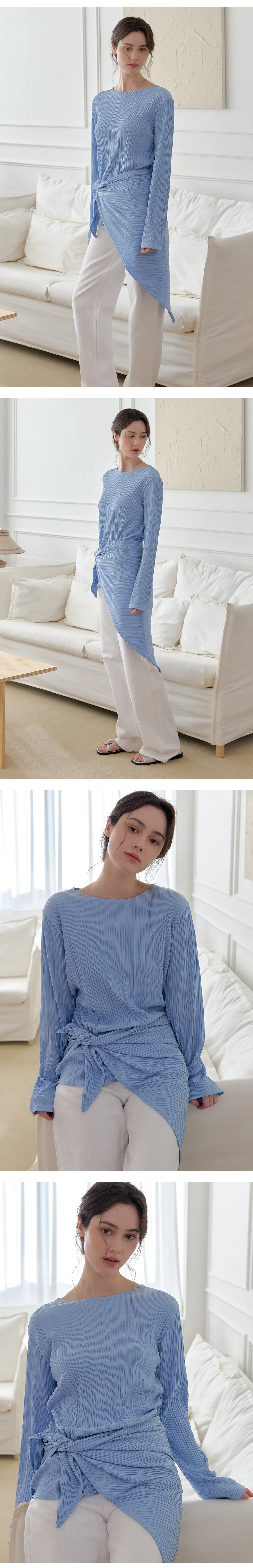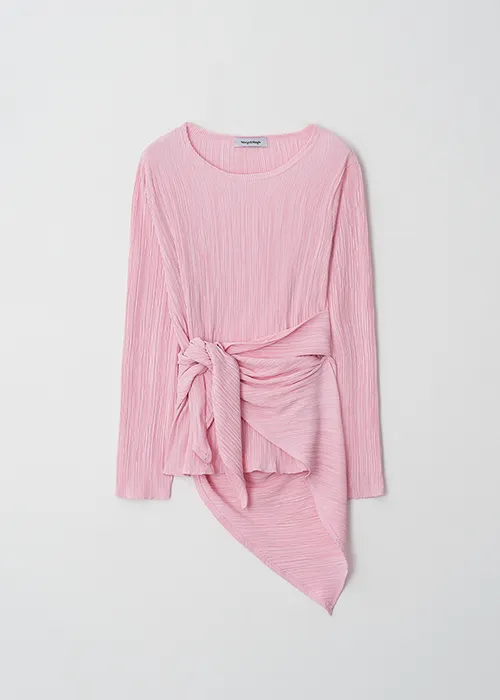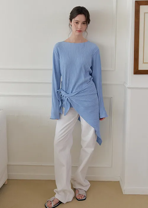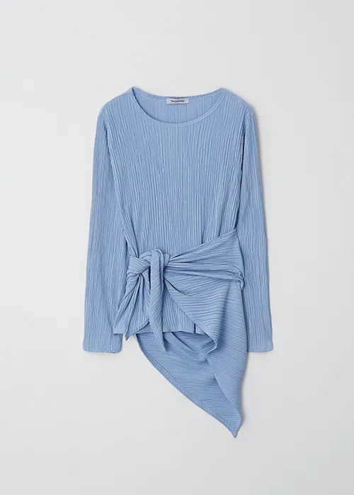 繊細なプリーツテクスチャーで仕立てた、長袖のティーブラウス。