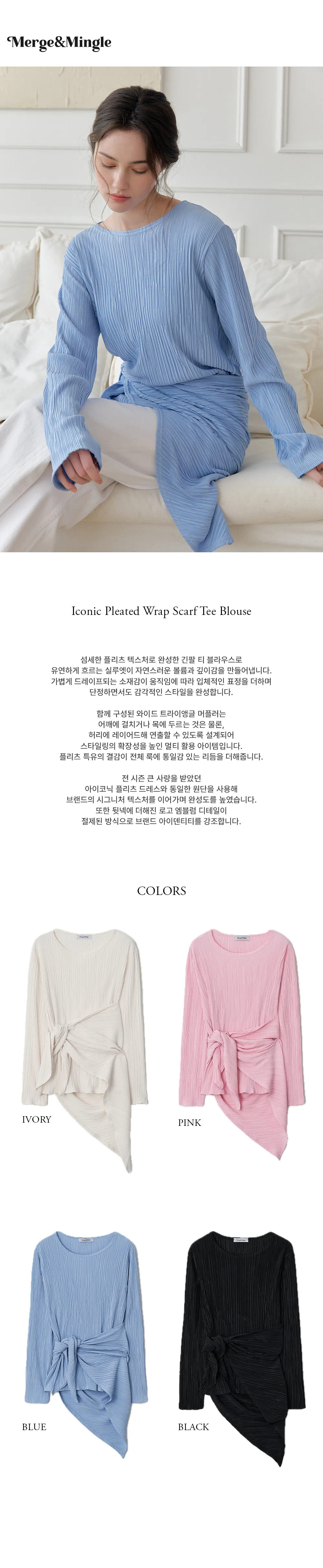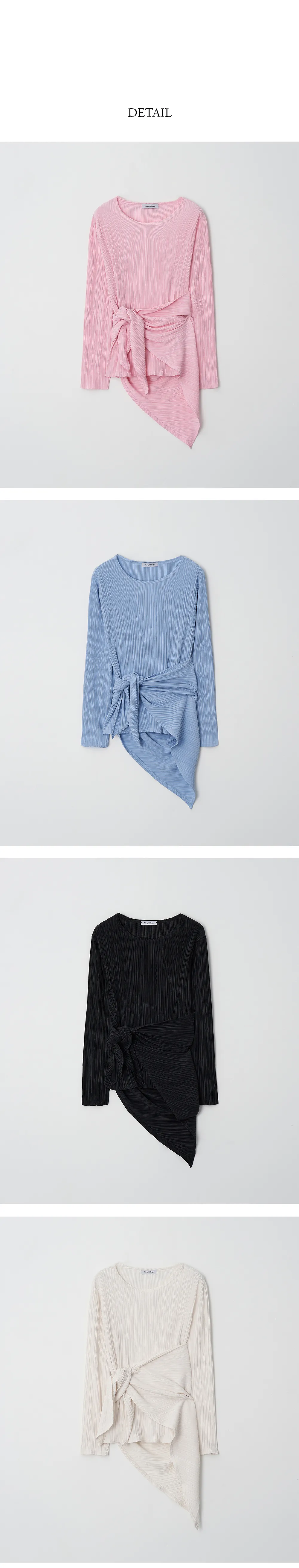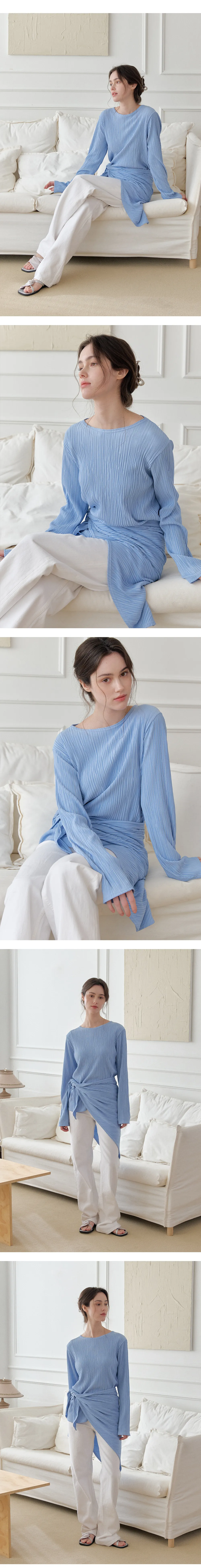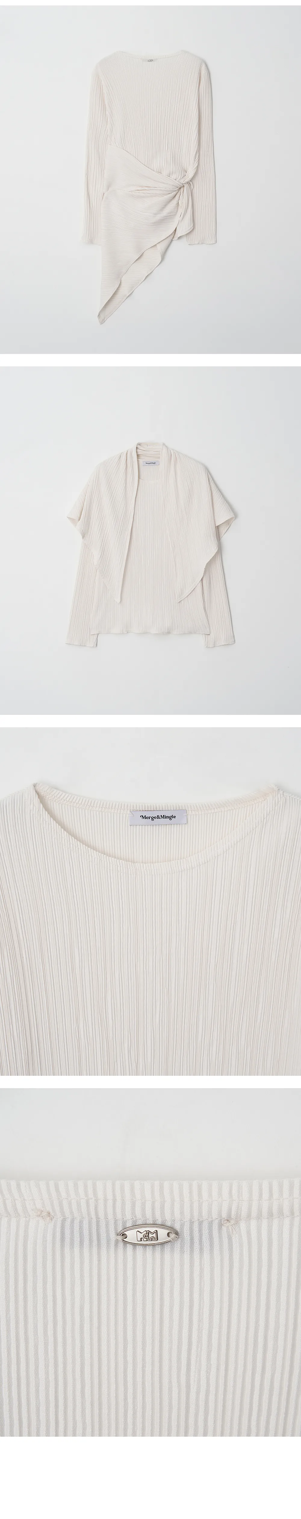 繊細なプリーツテクスチャーで仕立てた、長袖のティーブラウス。