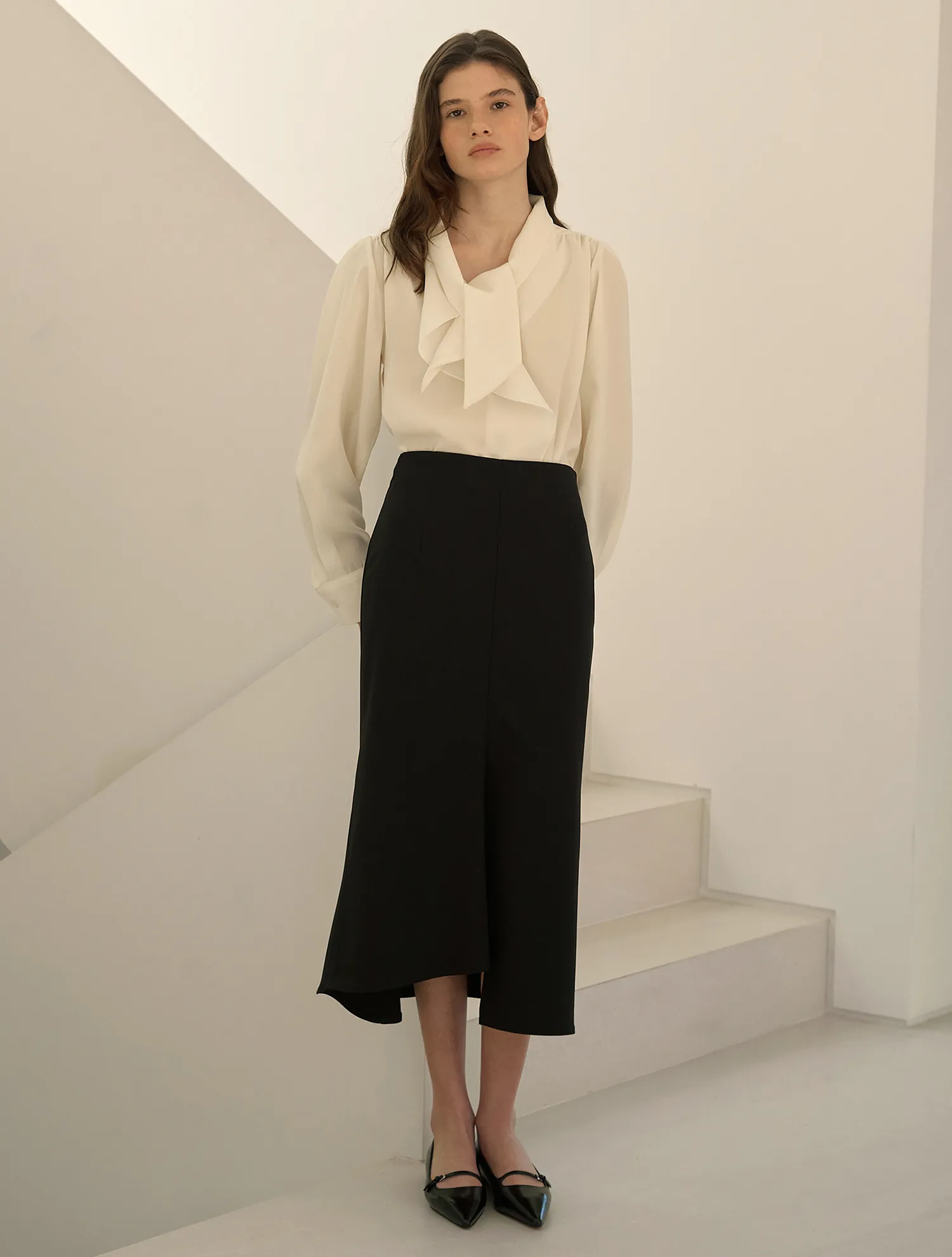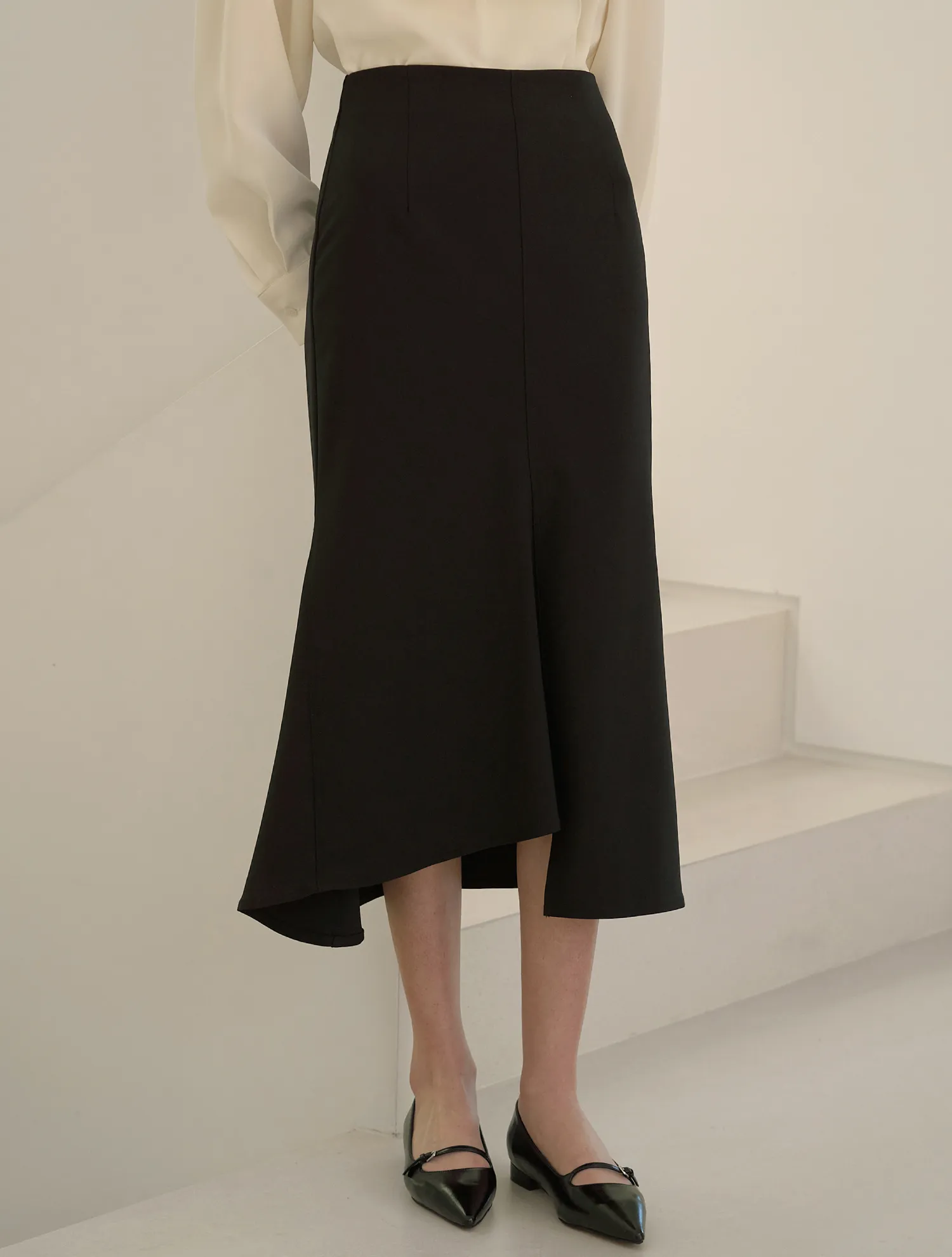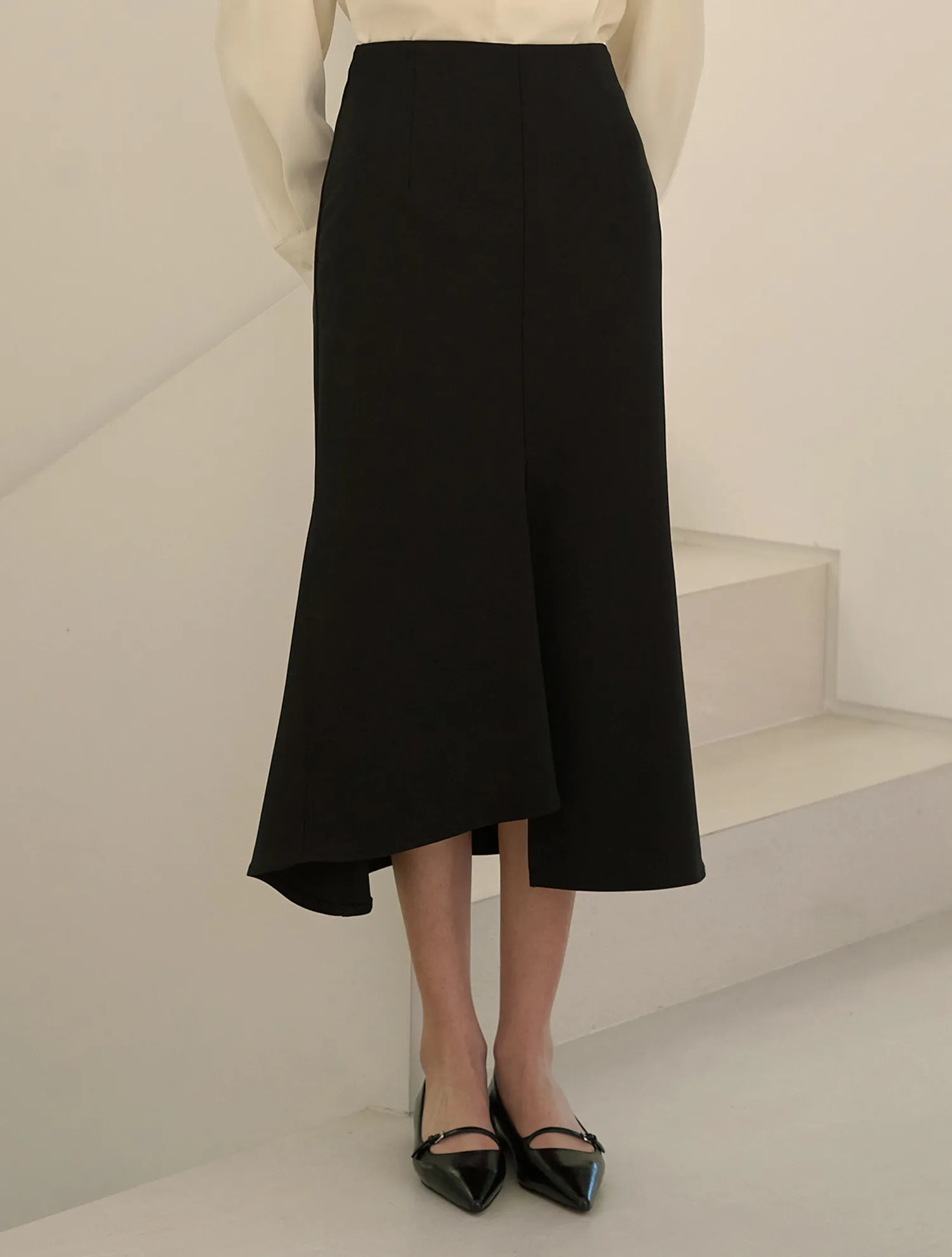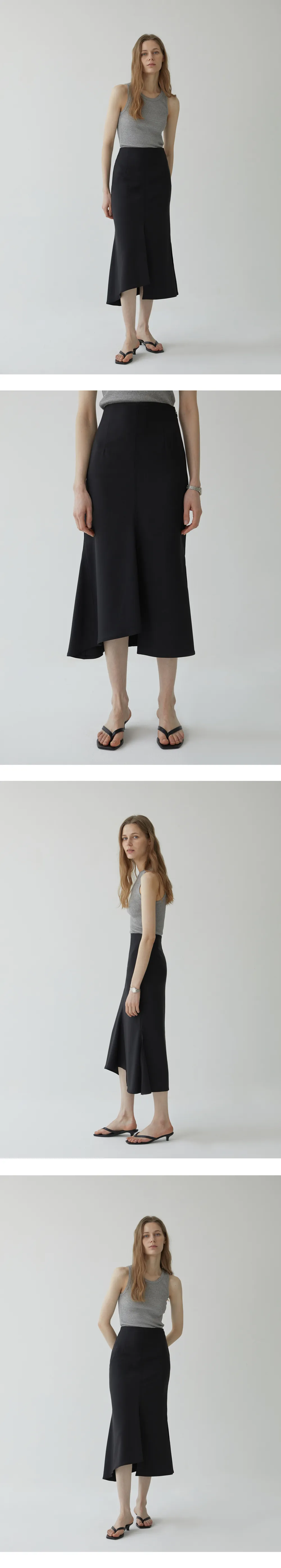 >>多くのレビューで証明された、シーズンごとに愛されている定番のマーメイドスカートです。ウエストをすっきりと引き締め、裾にかけて広がるマーメイドラインが女性らしいシルエットを演出します。スリムでロングなレッグラインを演出し、アンバランスな丈感がよりフェミニンな雰囲気を引き立てます。