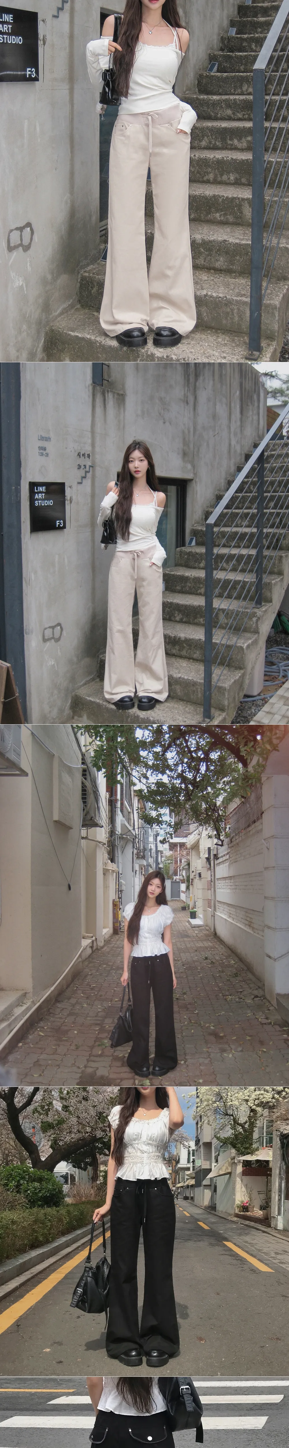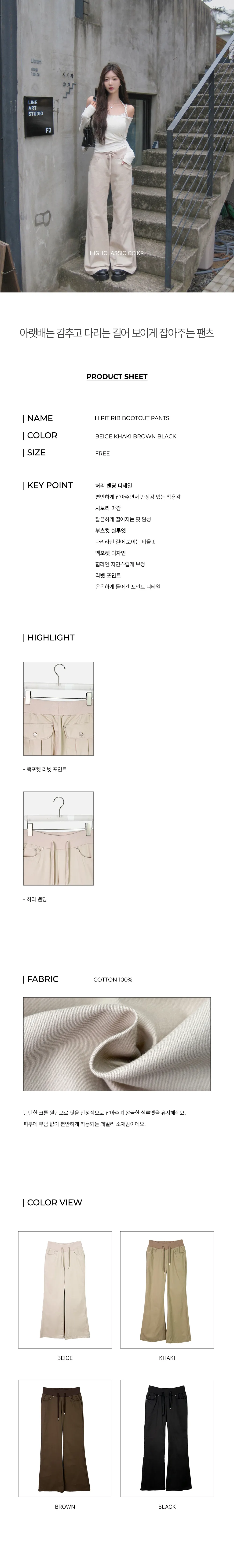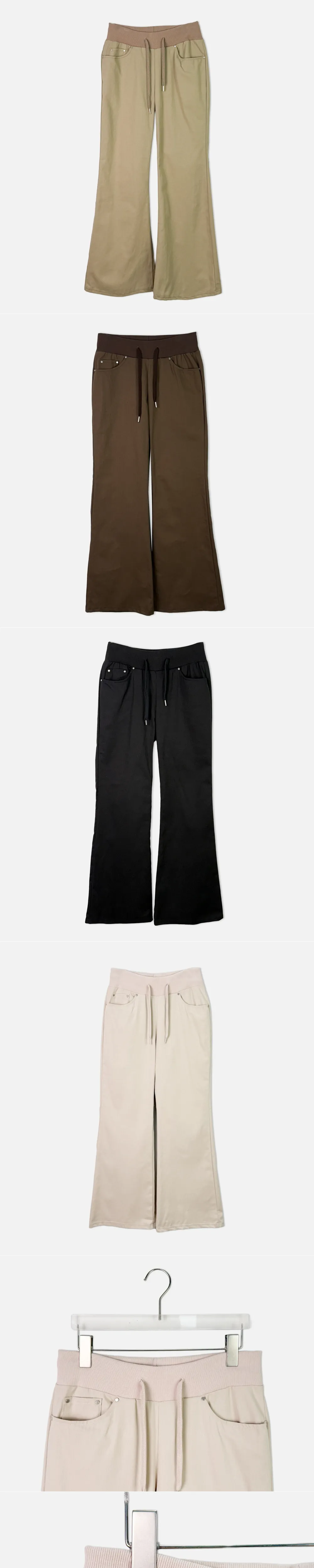 | Size | ウエスト | ヒップ | 裾幅 | わたり | 股上 | 着丈 |