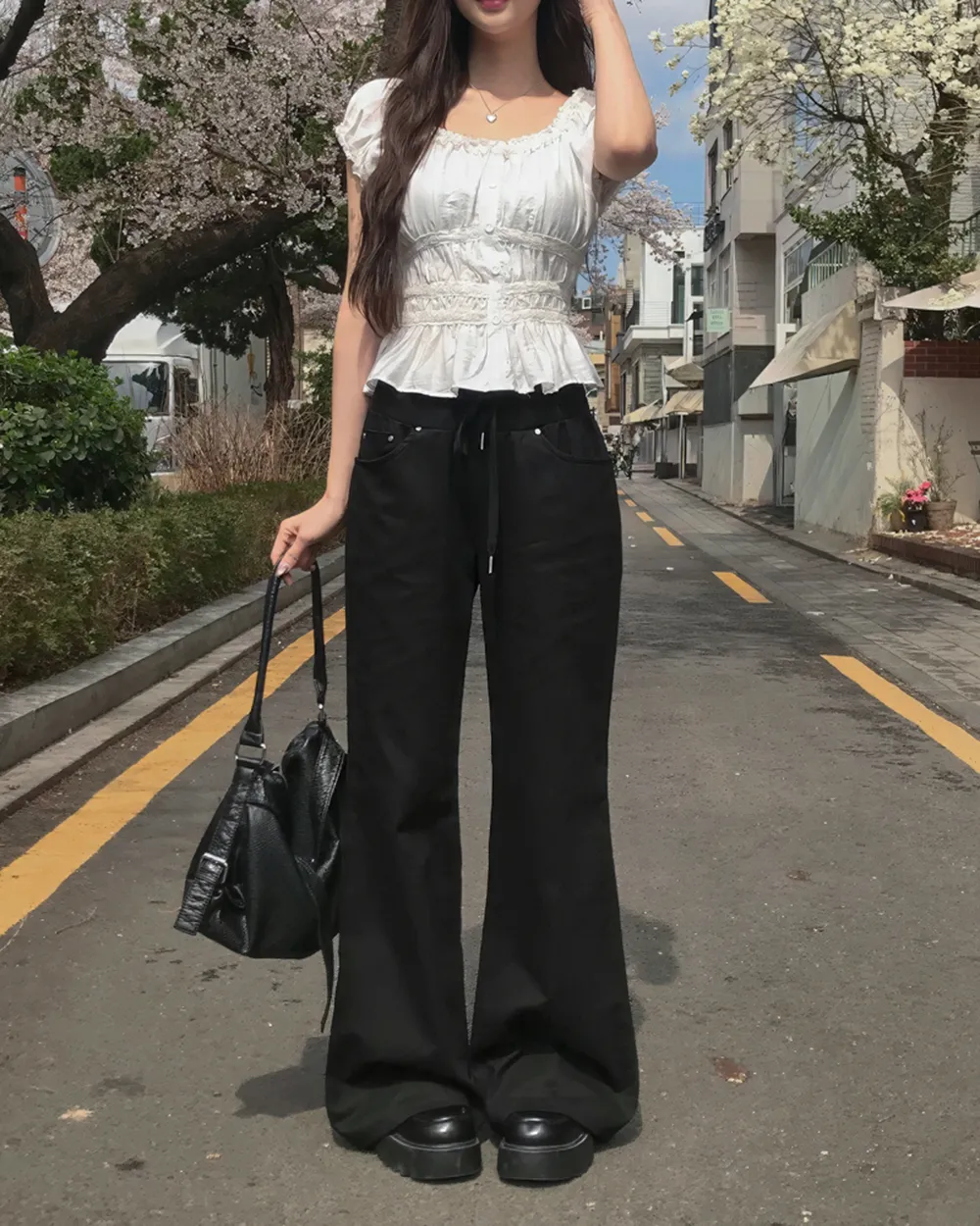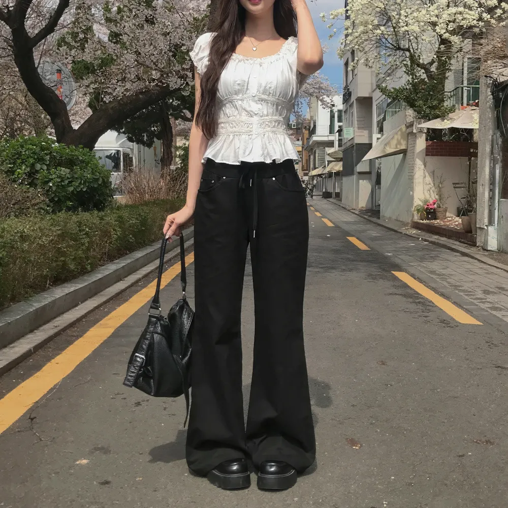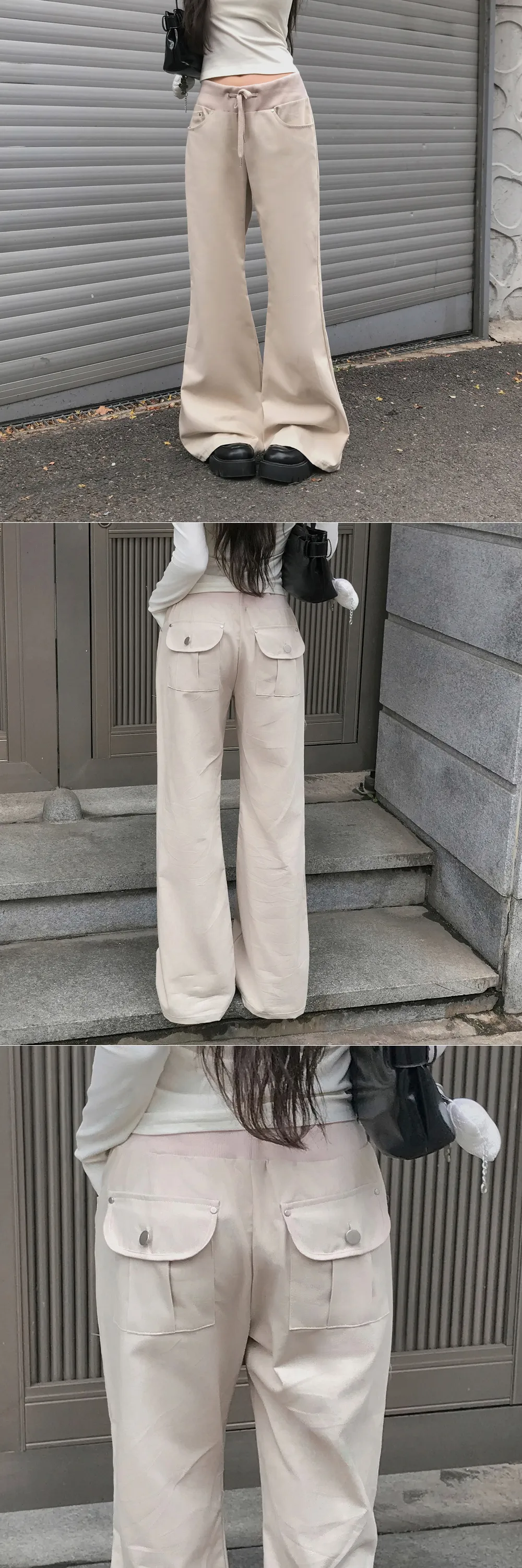 | Size | ウエスト | ヒップ | 裾幅 | わたり | 股上 | 着丈 |