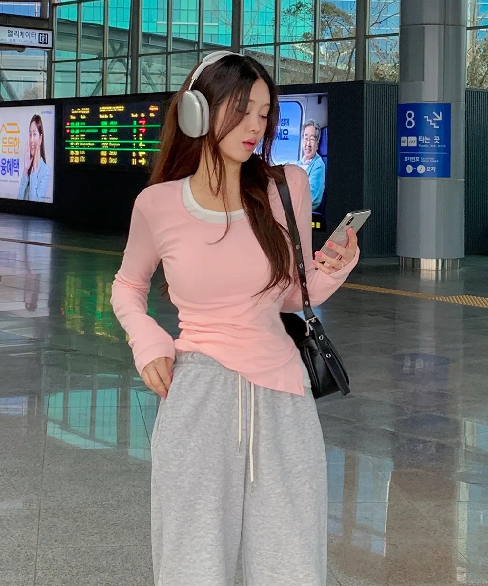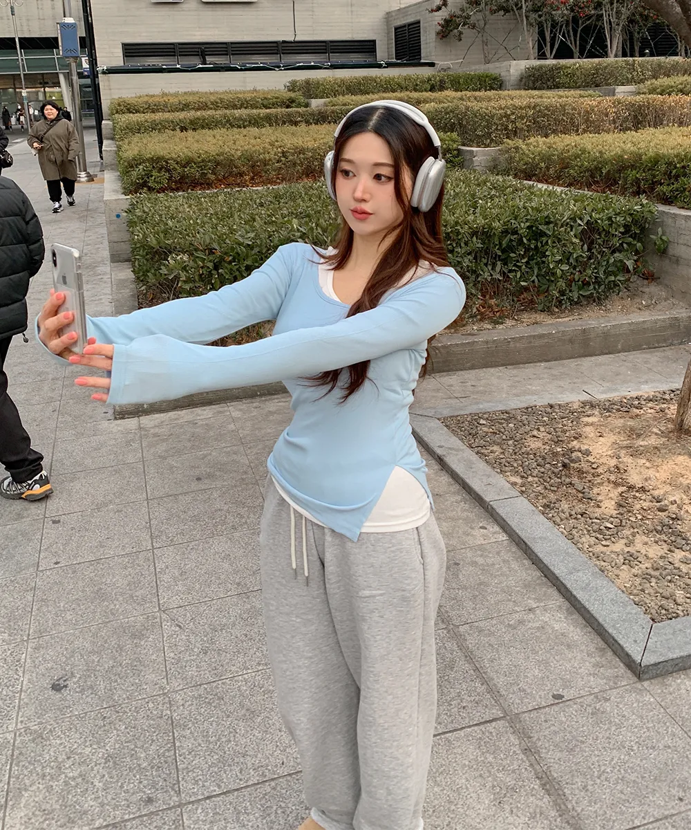 着用 : ラウンドネック/スリットO/スカイブルー / FREE,ラウンドネック/スリットX/アイボリー / FREE,ラウンドネック/スリットO/ピンク / FREE