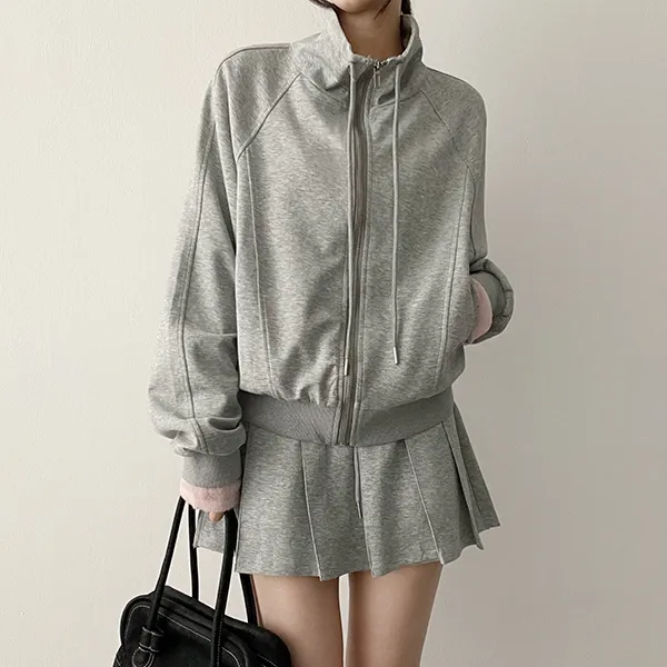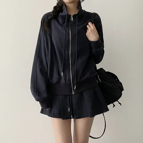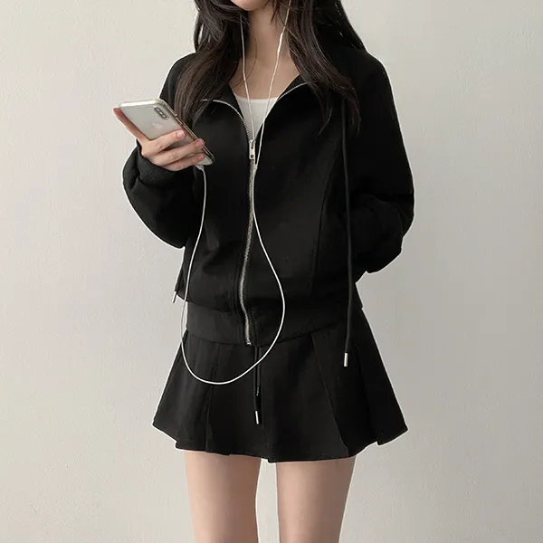 ジップアップフードドローストリングポケットラインウエストゴムスリム長袖バックストラップバックポケットブーツカット無地ツーピース(トップス、ボトムス)パンツジップパーカー