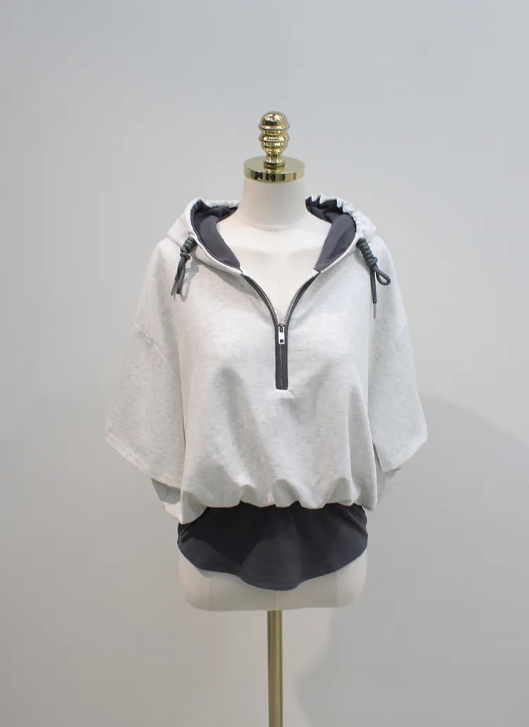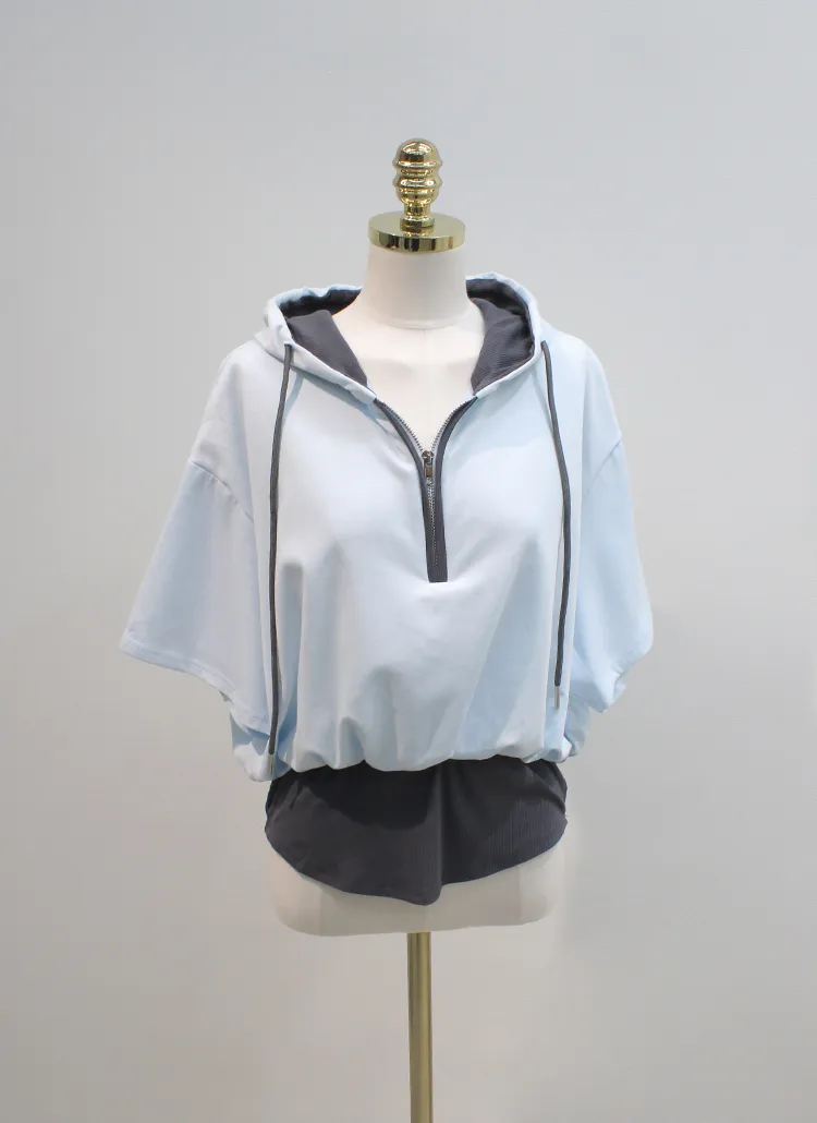 コットンジップアップハイネックラグランライン長袖ルーズプリーツAラインミニドローストリングポケットウエストゴム無地ジャンパースカートツーピース(トップス、ボトムス)