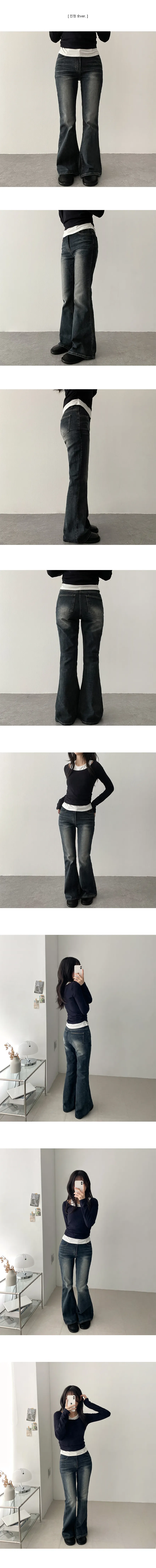 デニムノンウォッシュバックルジップアップブーツカットスリムポケットリベットバックポケットフラップポケットローライズ配色ディープブルーデニムパンツ