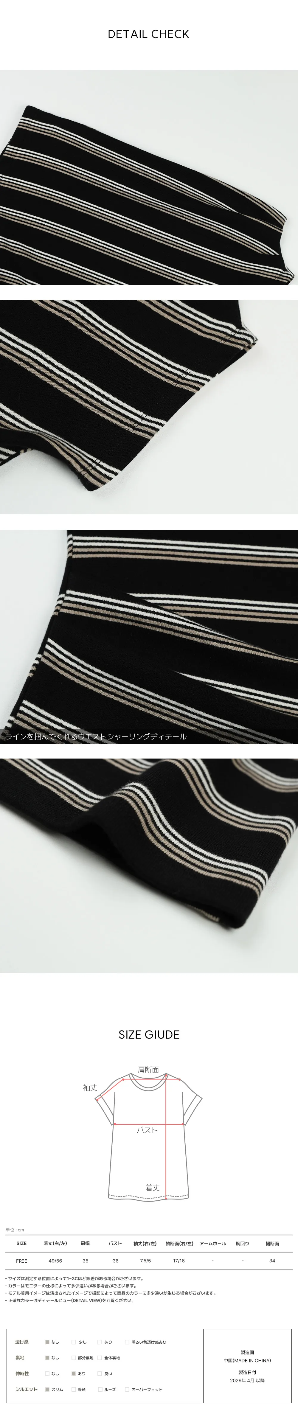 着用 : ブラック / FREE