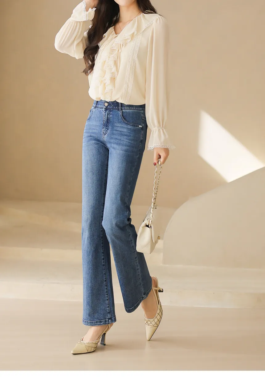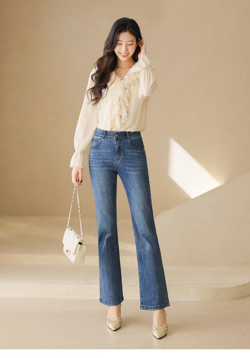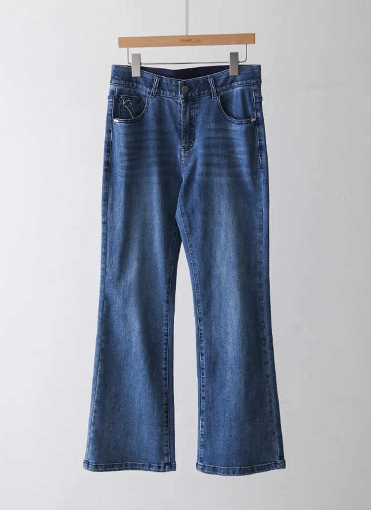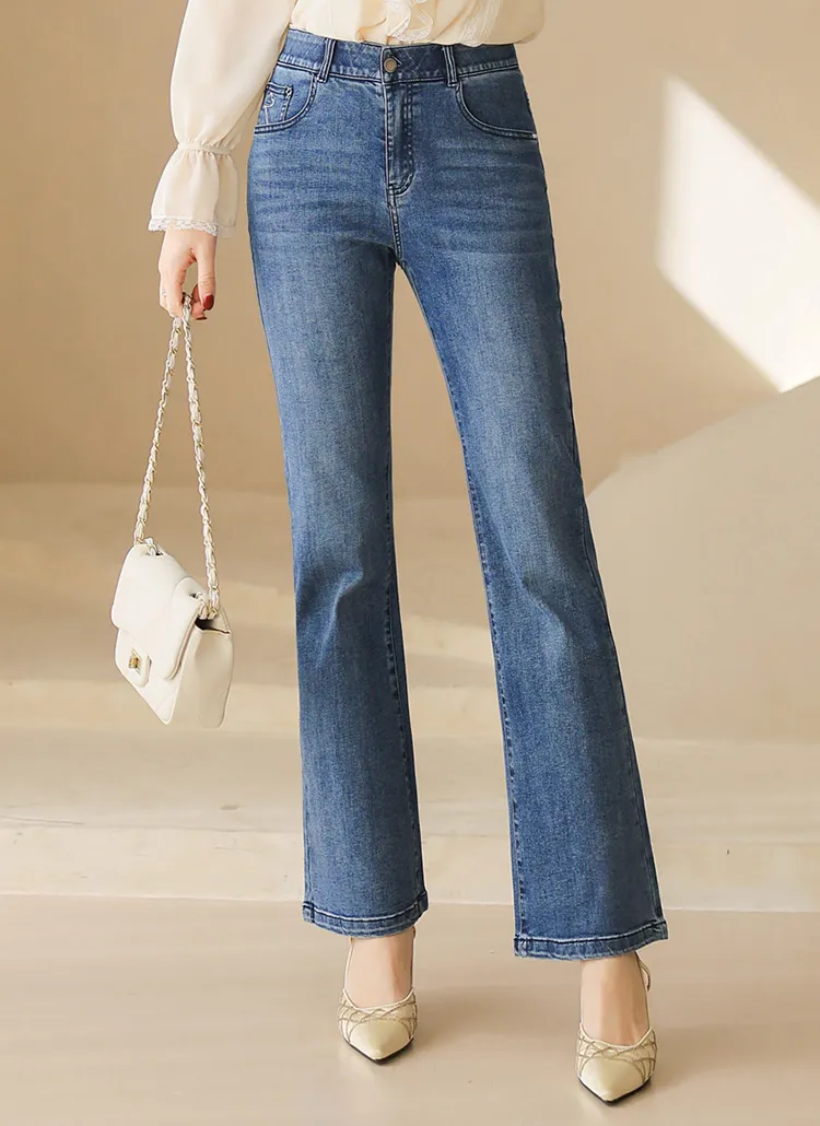 デニムポケットフラップポケットバックポケットループジップアップバックルローライズ骨盤パッドウォッシングブーツカットライトブルーデニムパンツ