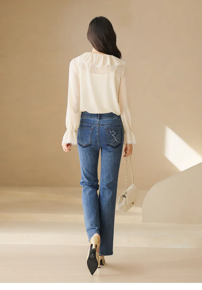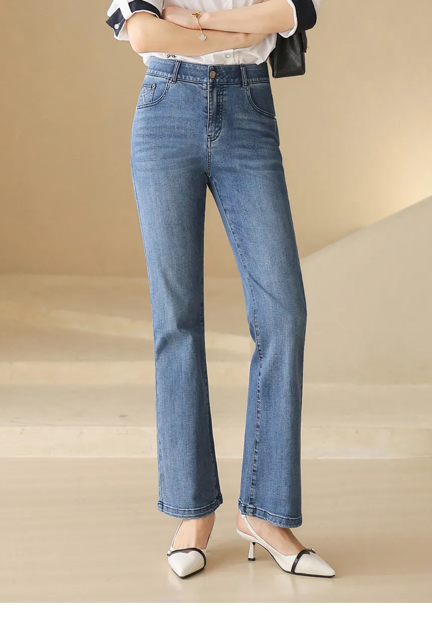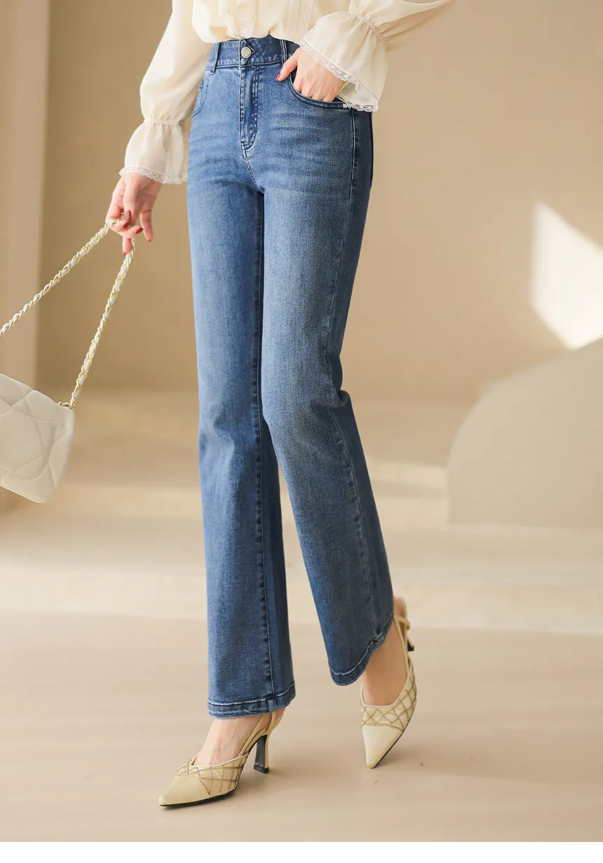デニムポケットフラップポケットバックポケットループジップアップバックルローライズ骨盤パッドウォッシングブーツカットライトブルーデニムパンツ