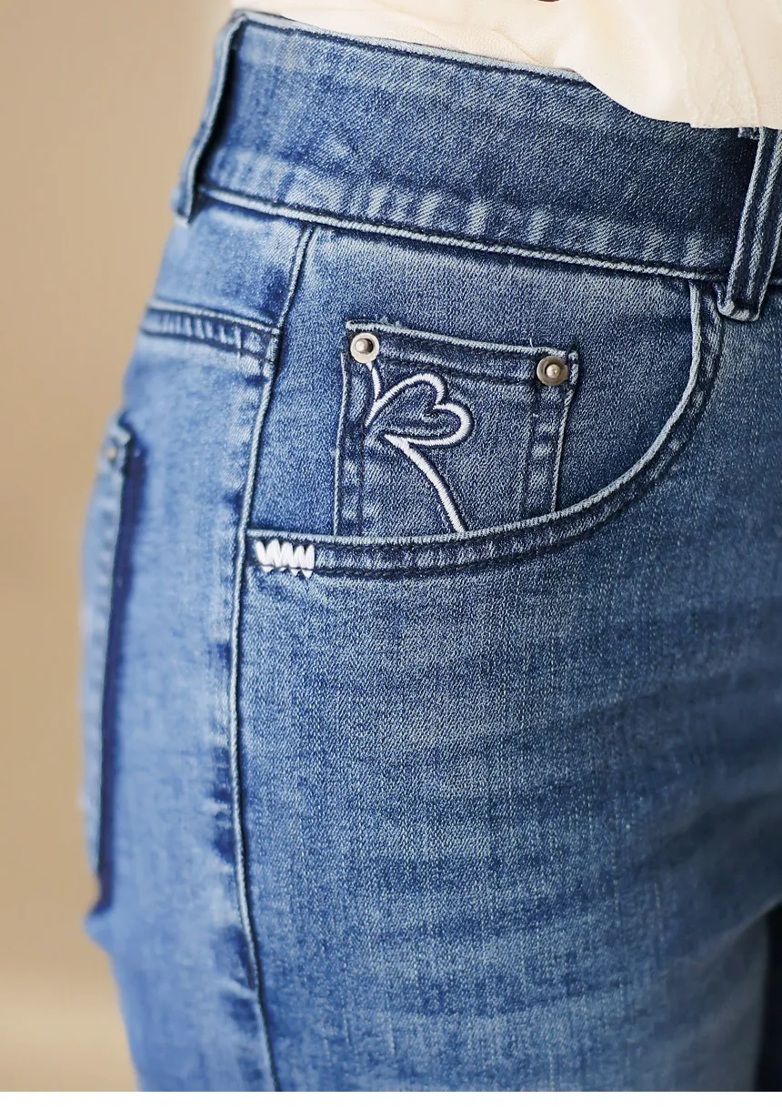デニムノンウォッシュバックルジップアップブーツカットスリムポケットリベットバックポケットフラップポケットローライズ配色ディープブルーデニムパンツ
