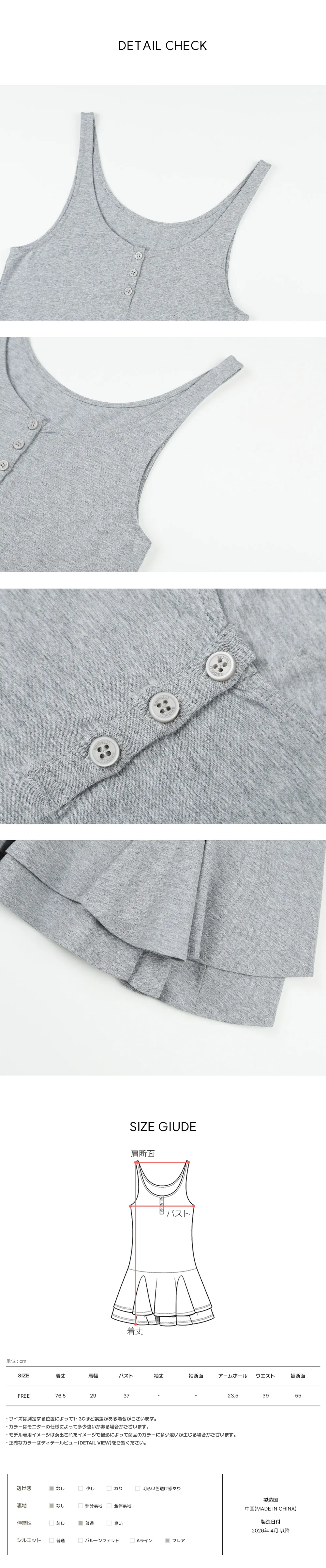 着用 : グレー / FREE