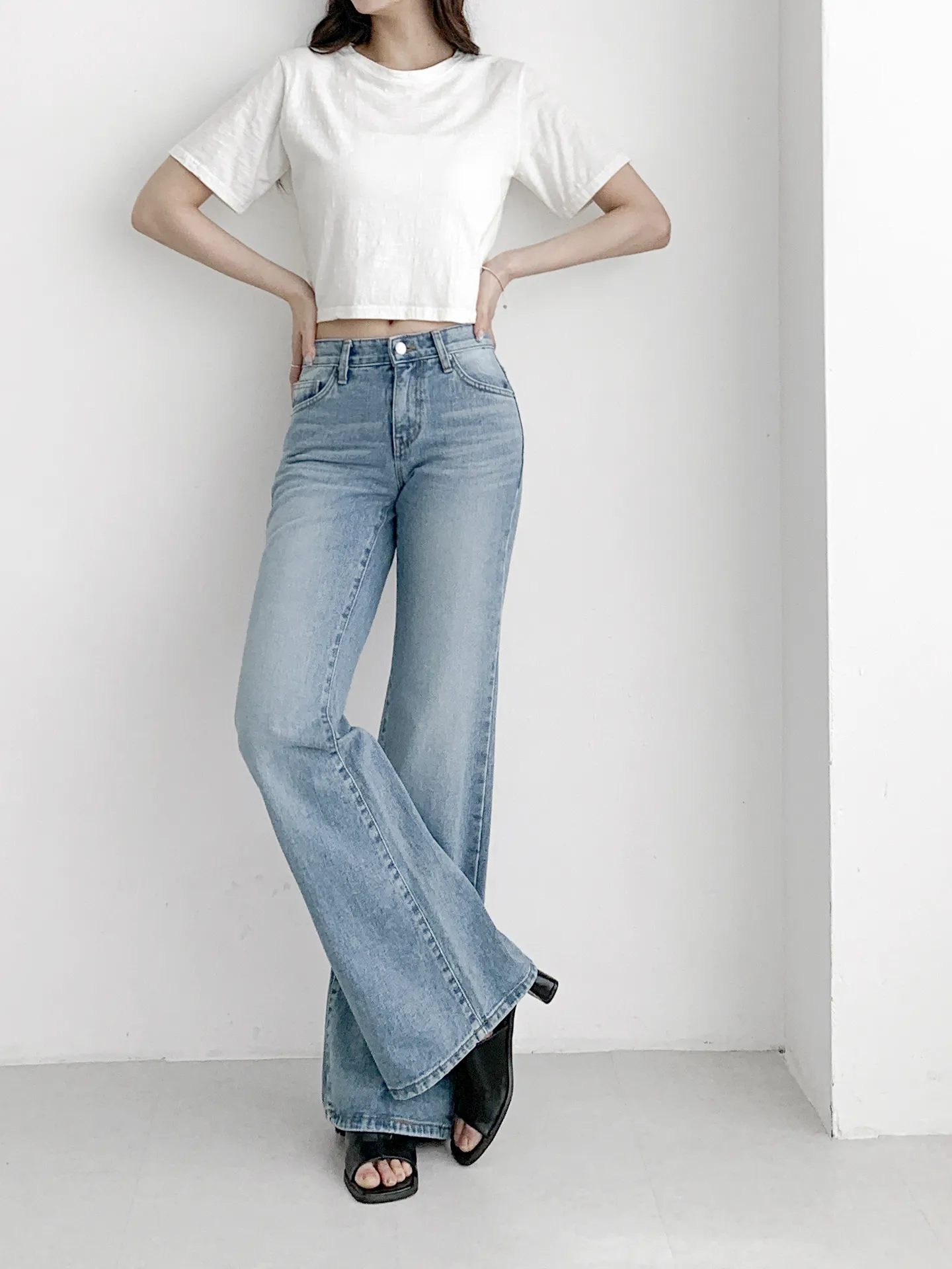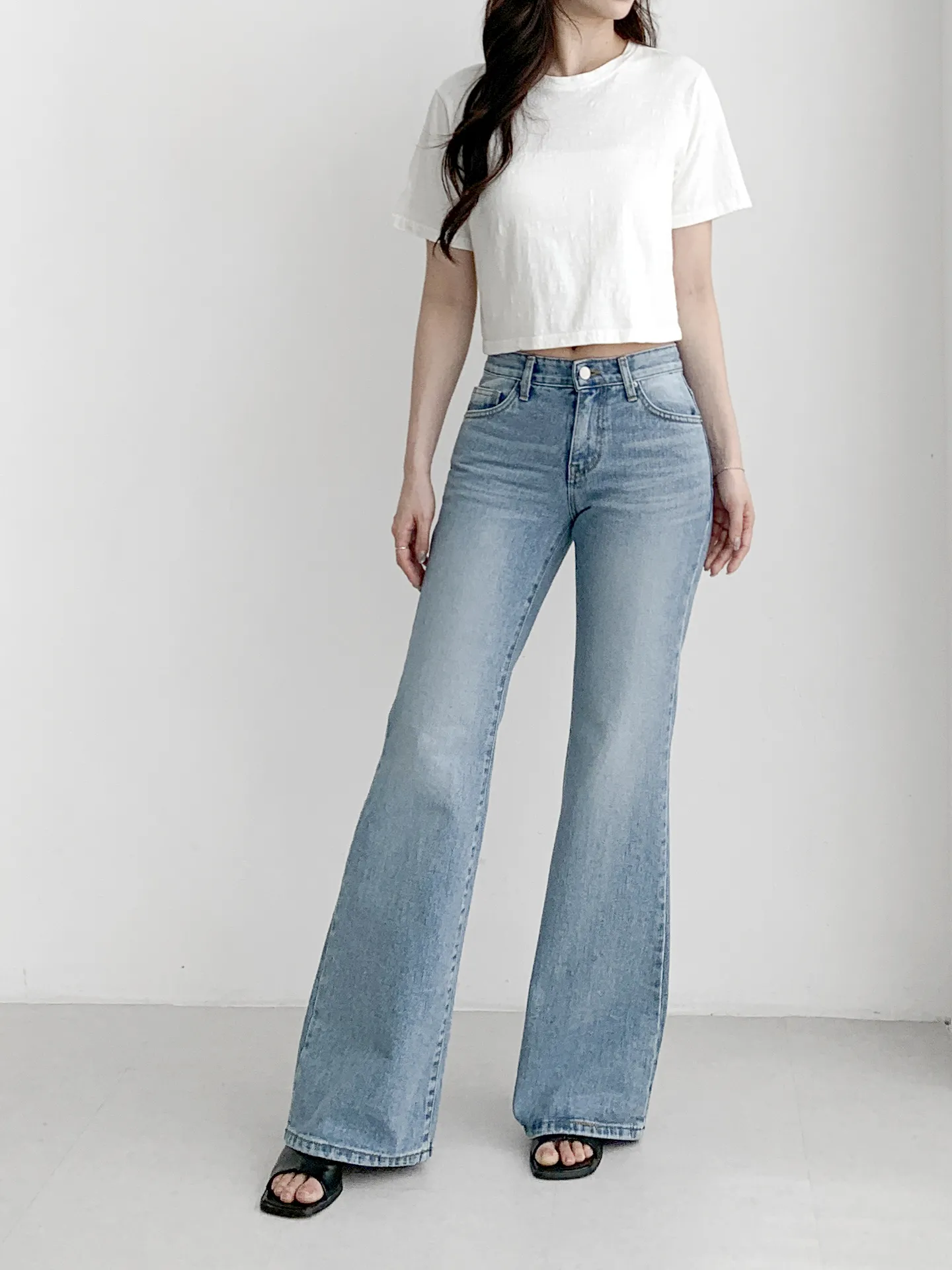デニムノンウォッシュバックルジップアップブーツカットスリムポケットリベットバックポケットフラップポケットローライズ配色ディープブルーデニムパンツ
