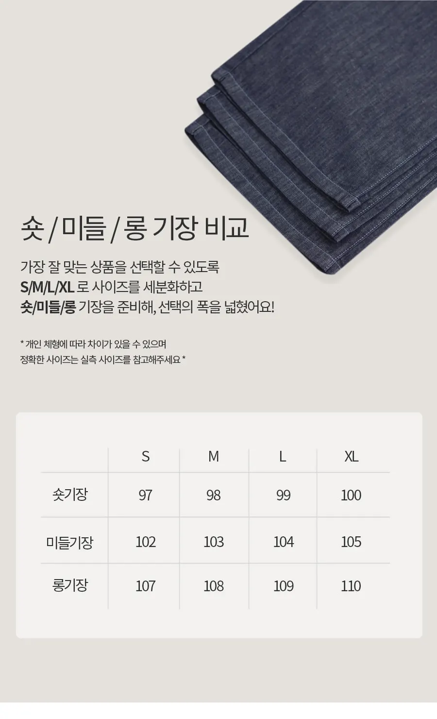 | XL | 36 | 56 | 27 | 32.5 | 34 | 100/105/110(ショート/ミディアム/ロング) |