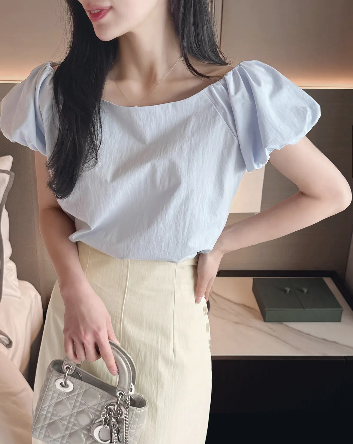 着用 : アイボリー / FREE,ブルー / FREE