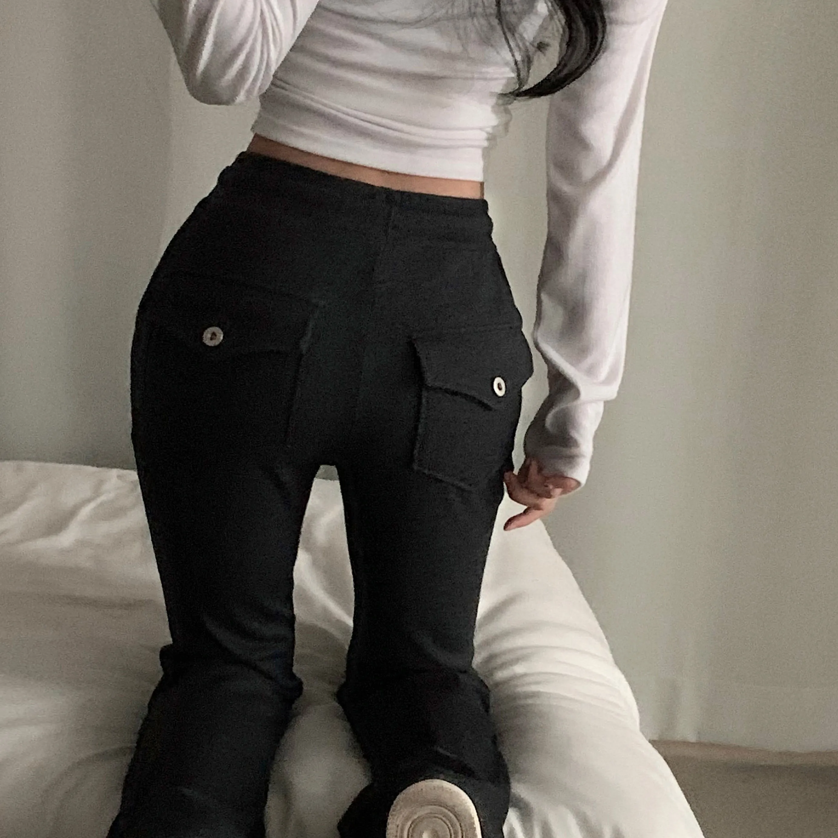 | Size | ウエスト | ヒップ | 裾幅 | わたり | 股上 | 着丈 |