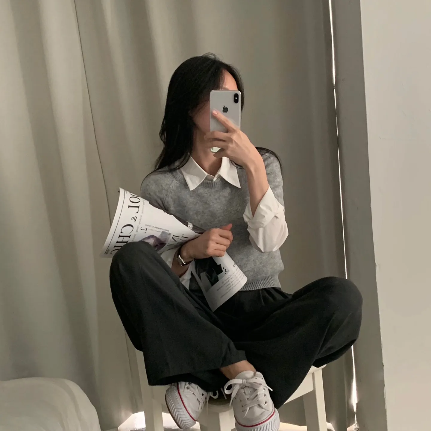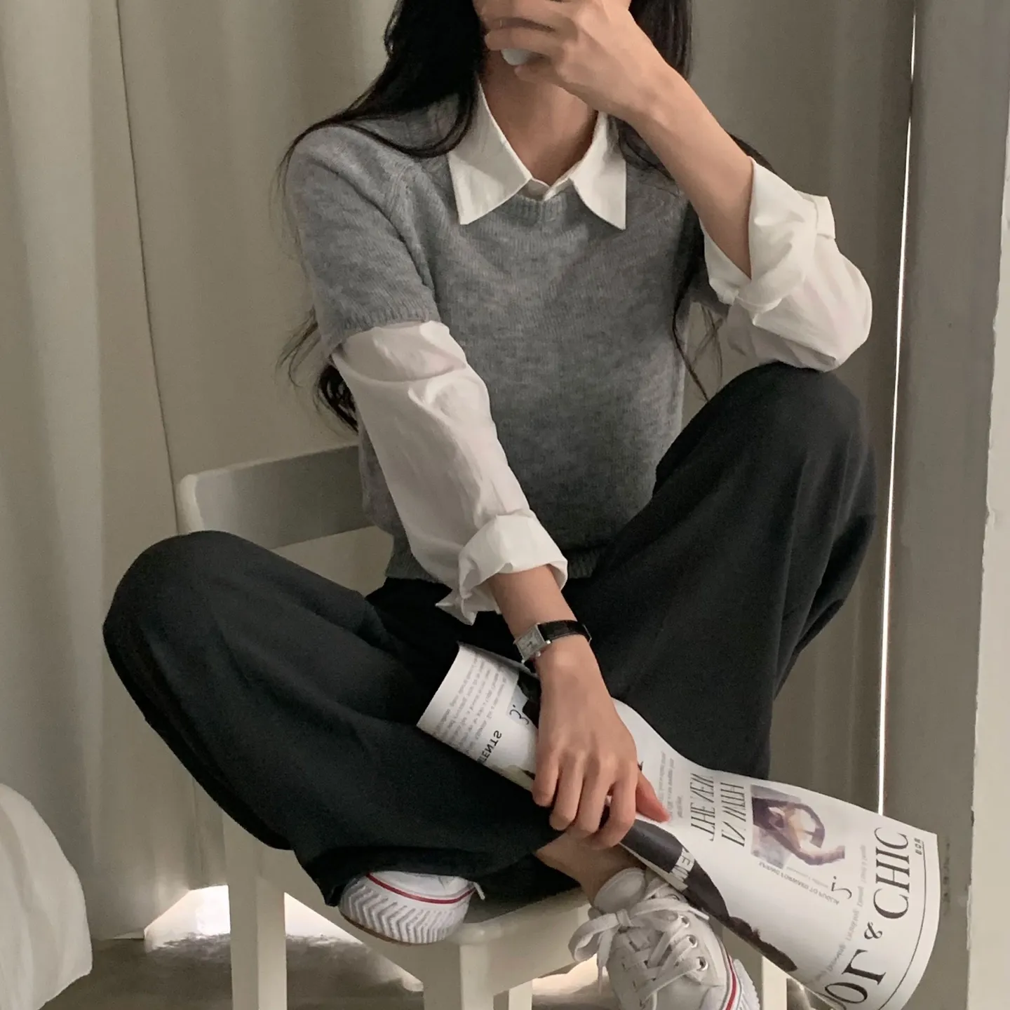 着用 : ベージュ / M,チャコールグレー / M,ブラック / M