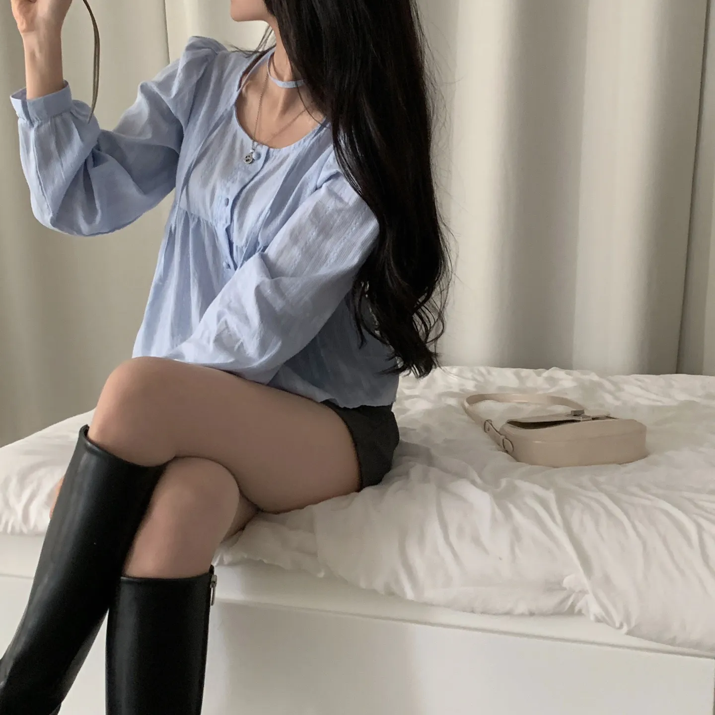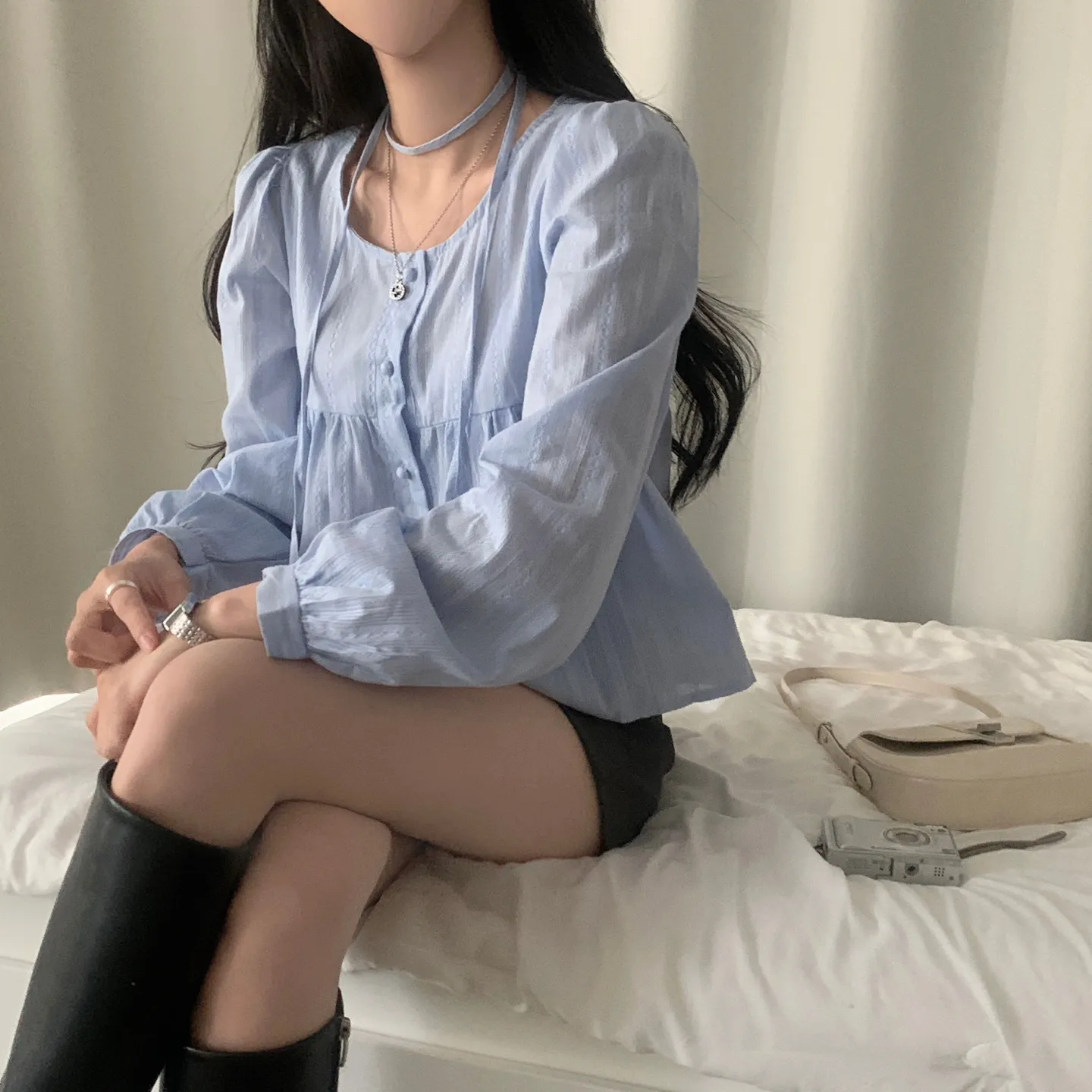 着用 : アイボリー / FREE,スカイブルー / FREE