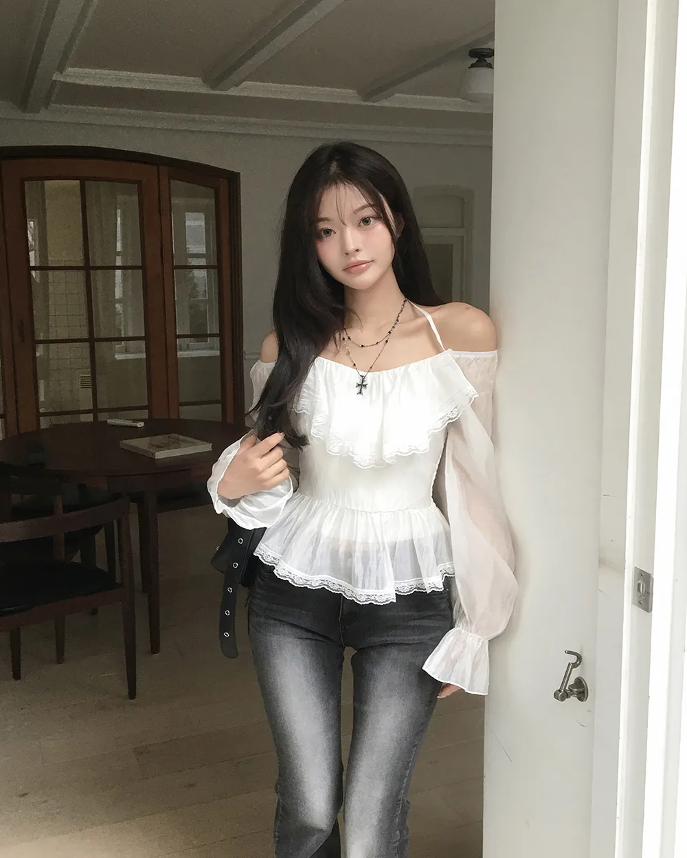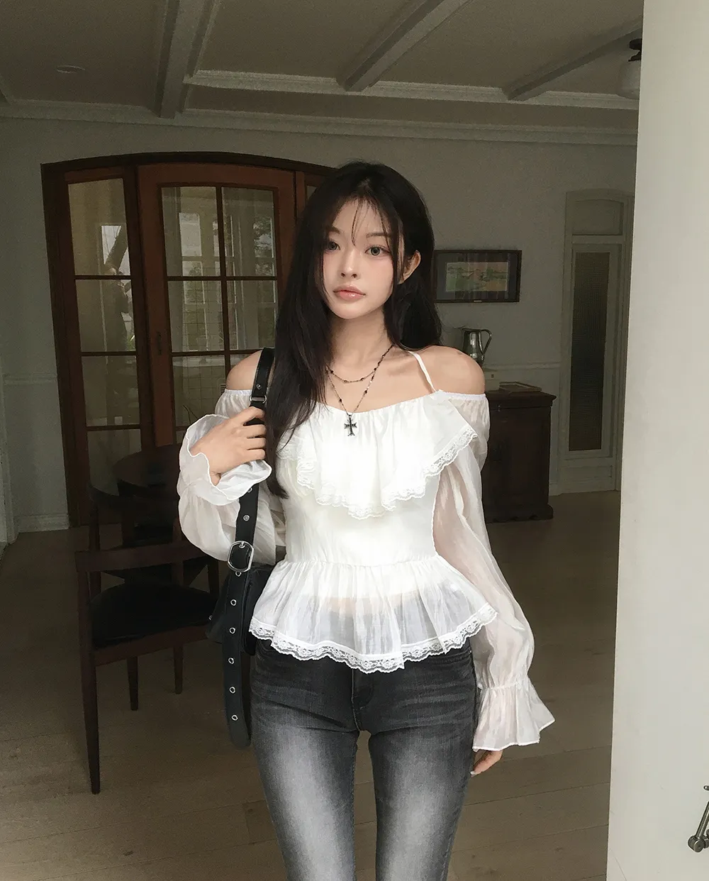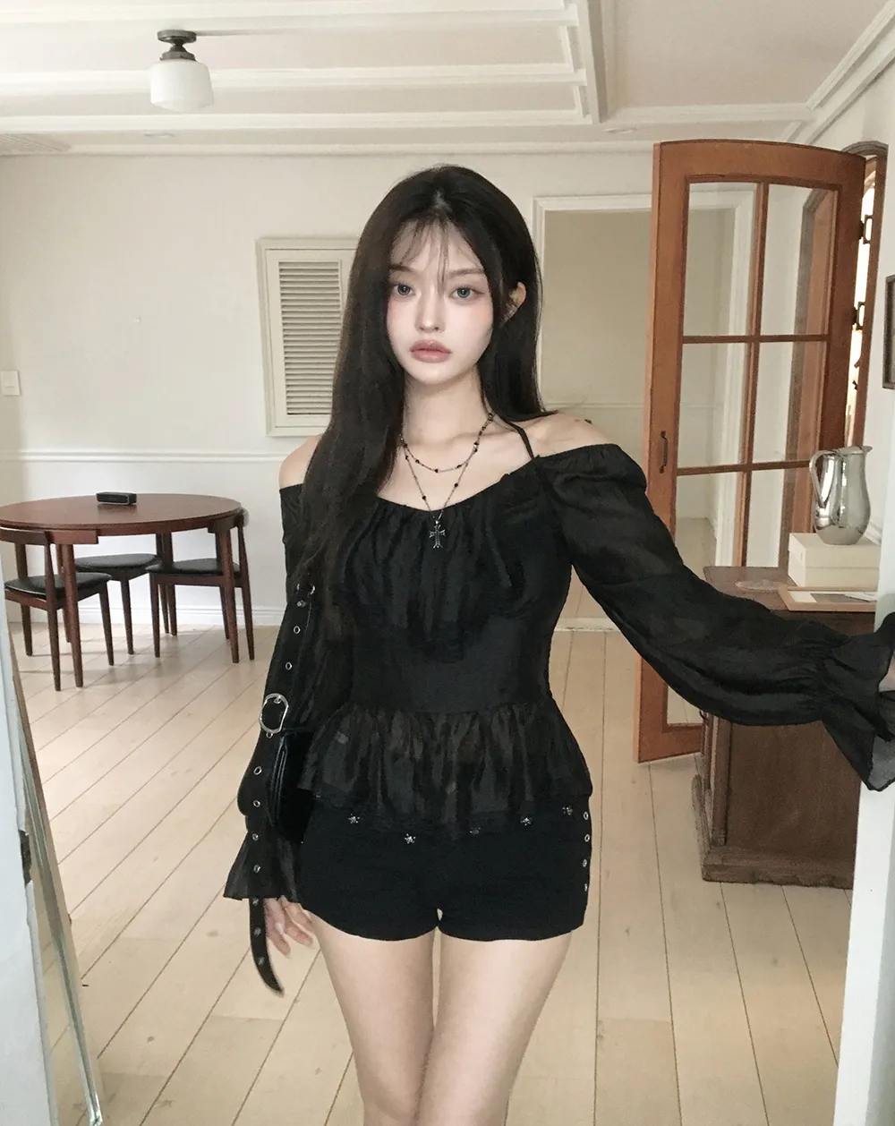 着用 : ホワイト / FREE,ブラック / FREE