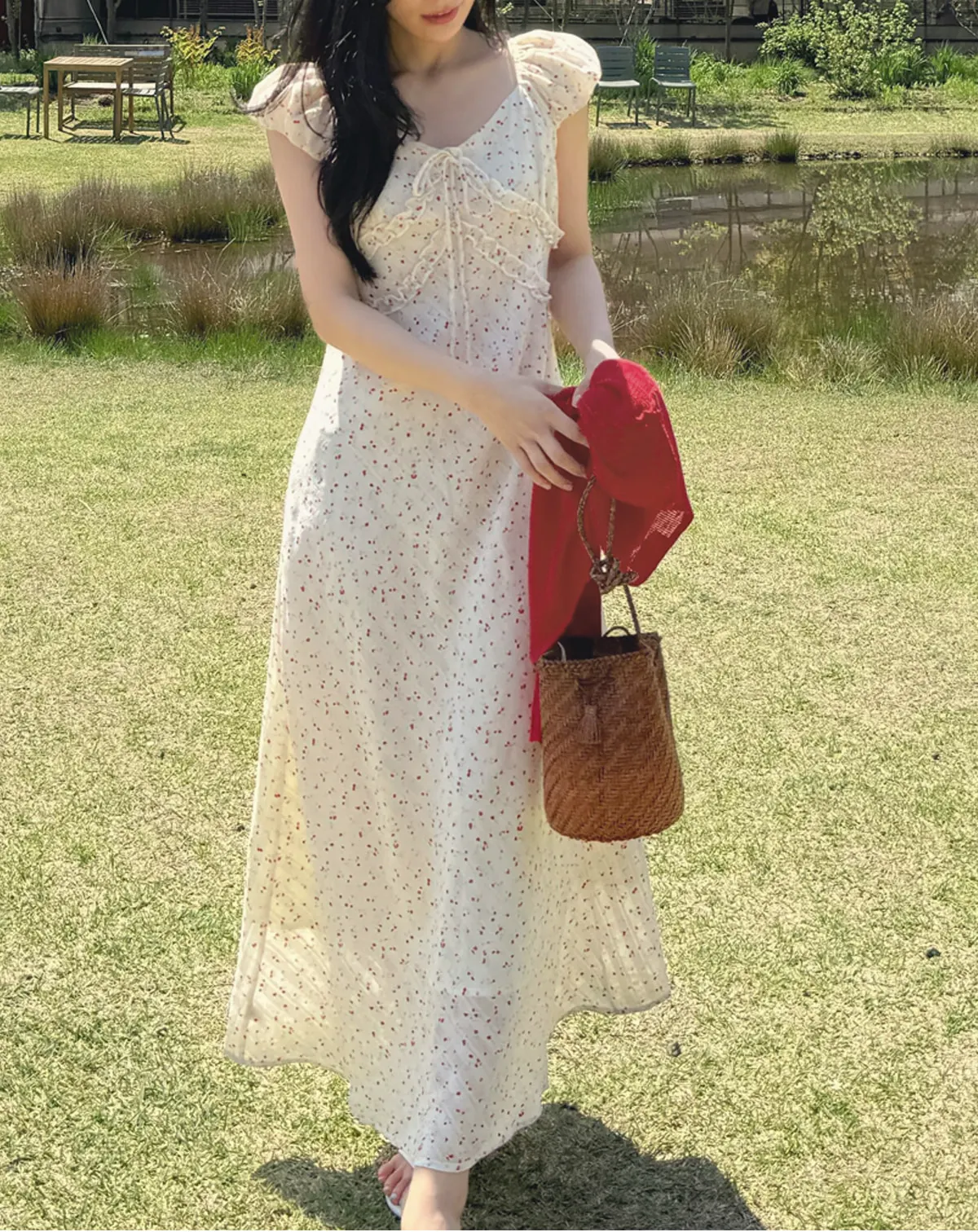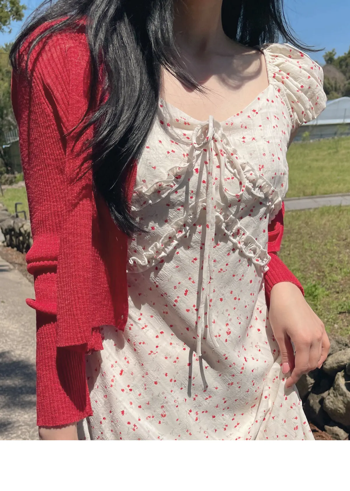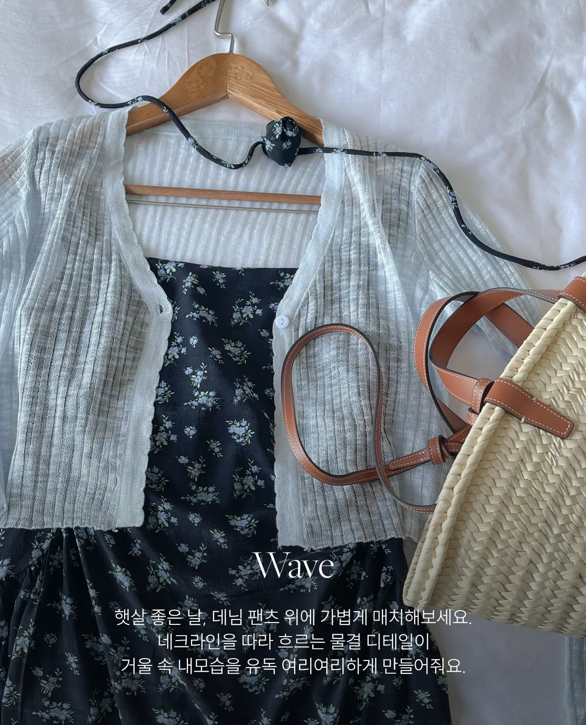 넥라인을 따라 흐르는 디테일이 사랑스러운 물결넥