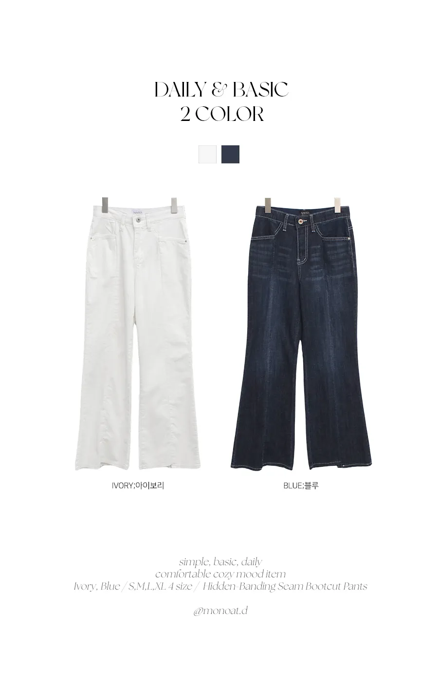 | Size | ウエスト | ヒップ | 裾幅 | わたり | 股上 | 着丈 |