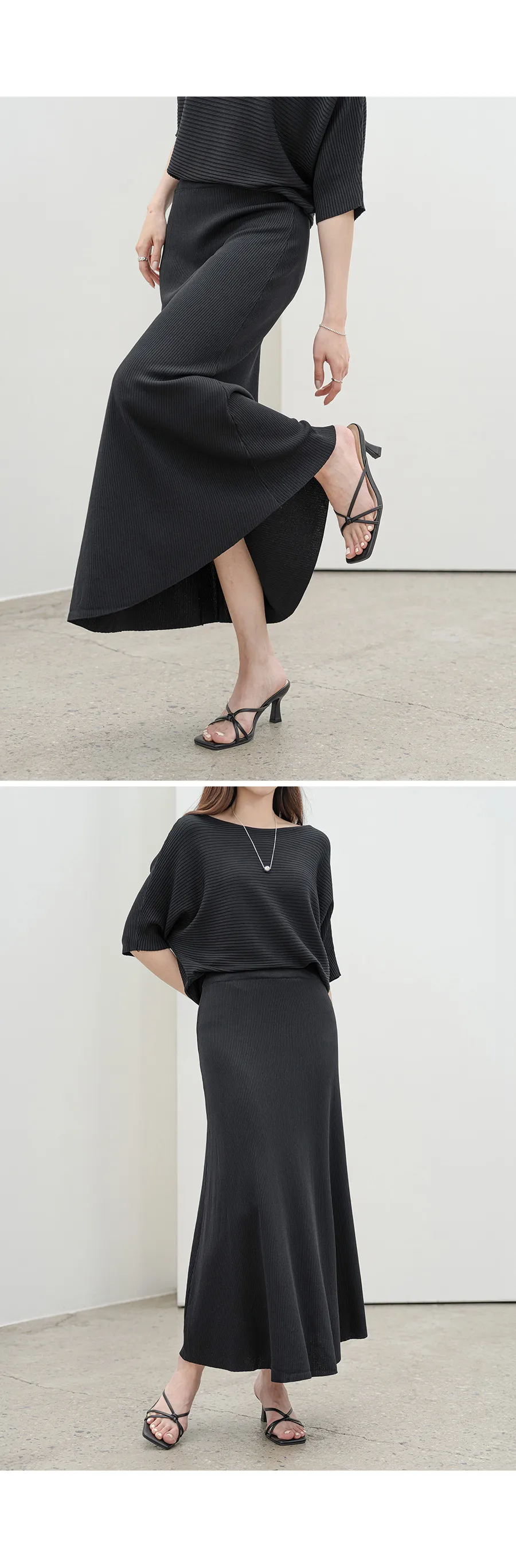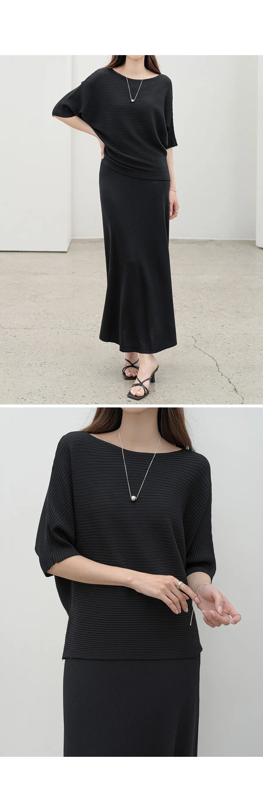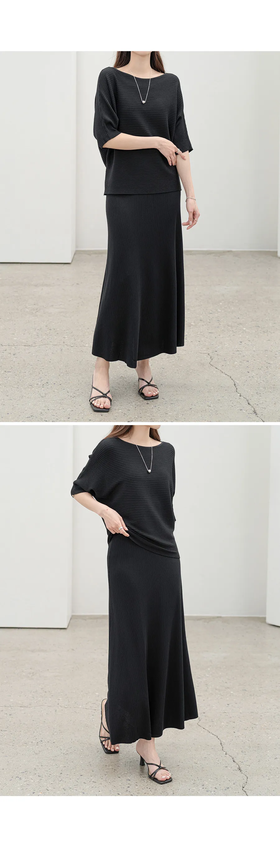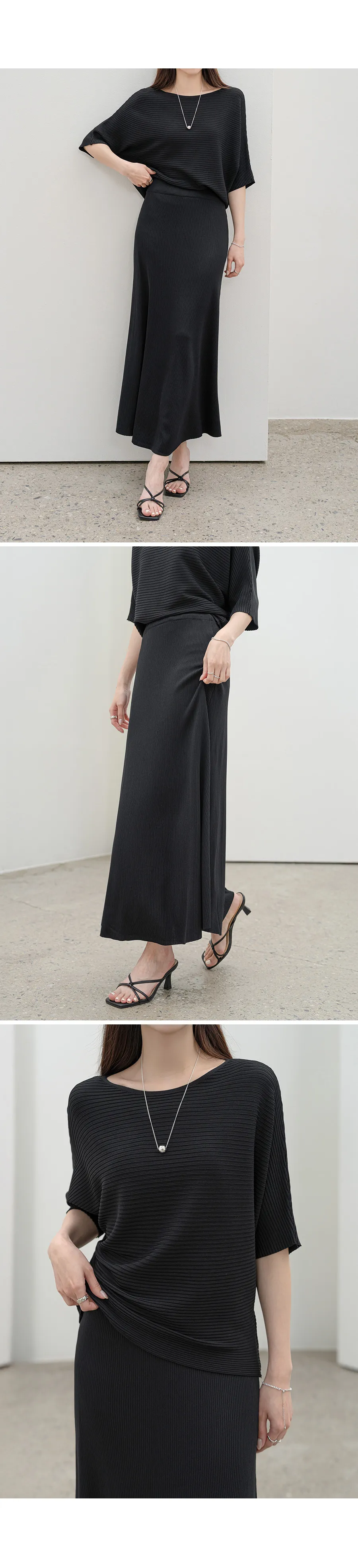 シルキーピンタックギャザースリムVネックドレープカウルネックヒドゥンジッパーストラップフレアAライン無地ノースリブラウススカートツーピース(トップス、ボトムス)