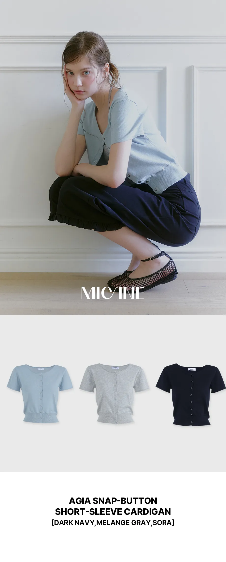 MILENA / SORA, MELANGE GRAY, DARK NAVY / 1 SIZE