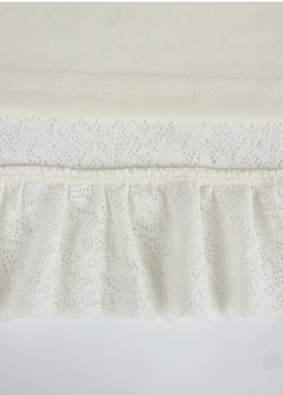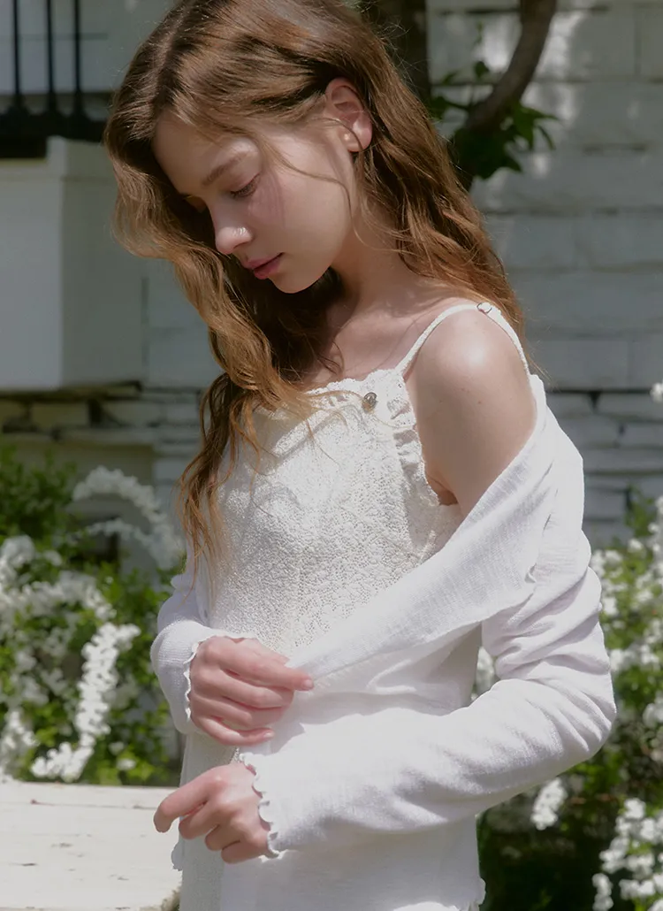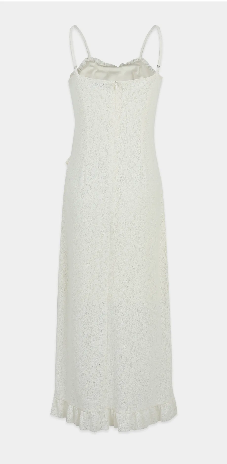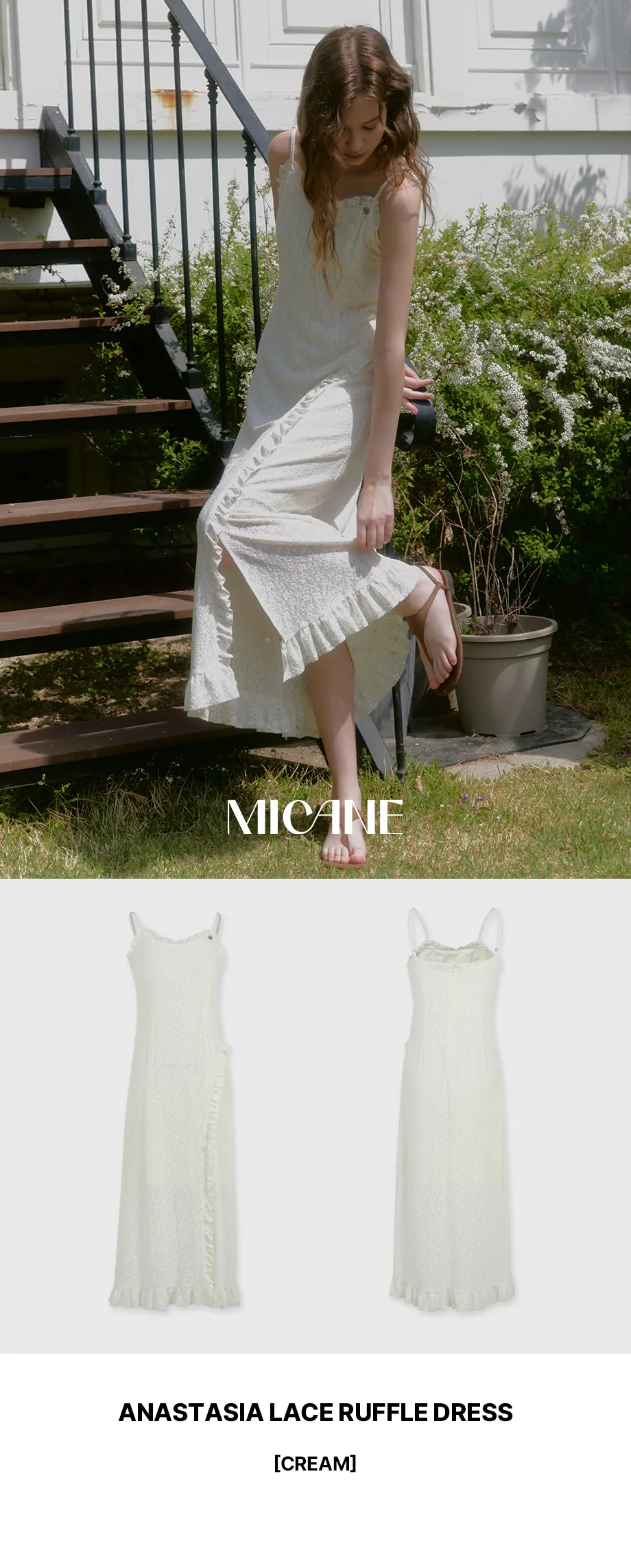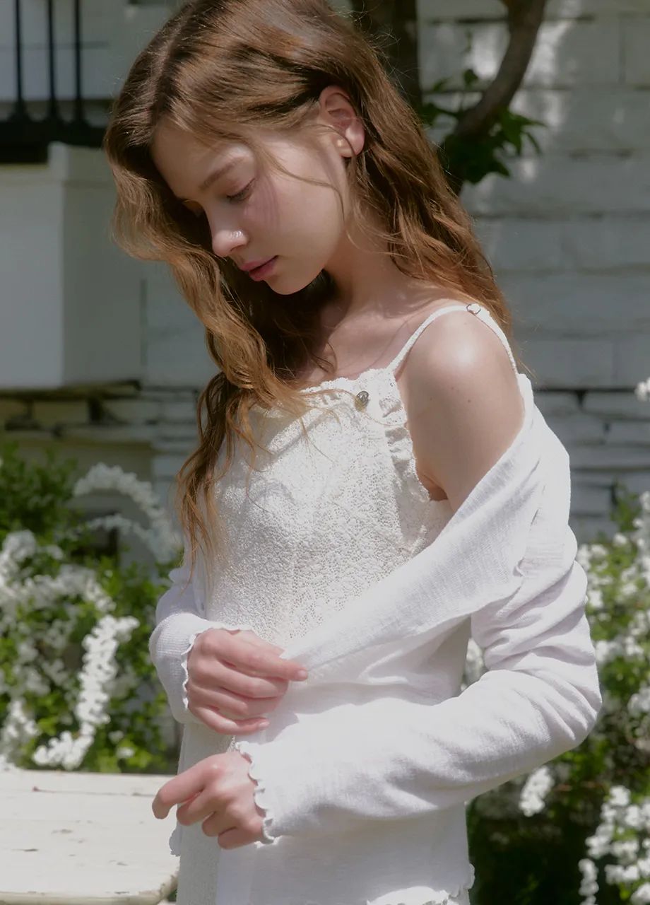 ヴィンテージバカンスムードで着用できるレースフリルドレスです。