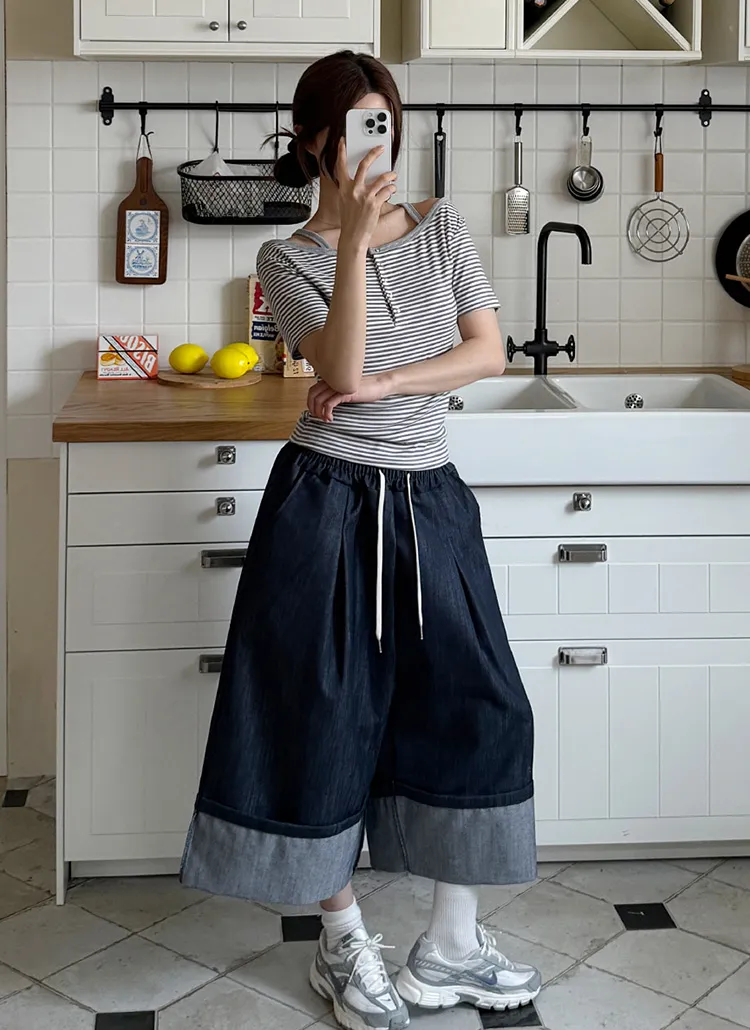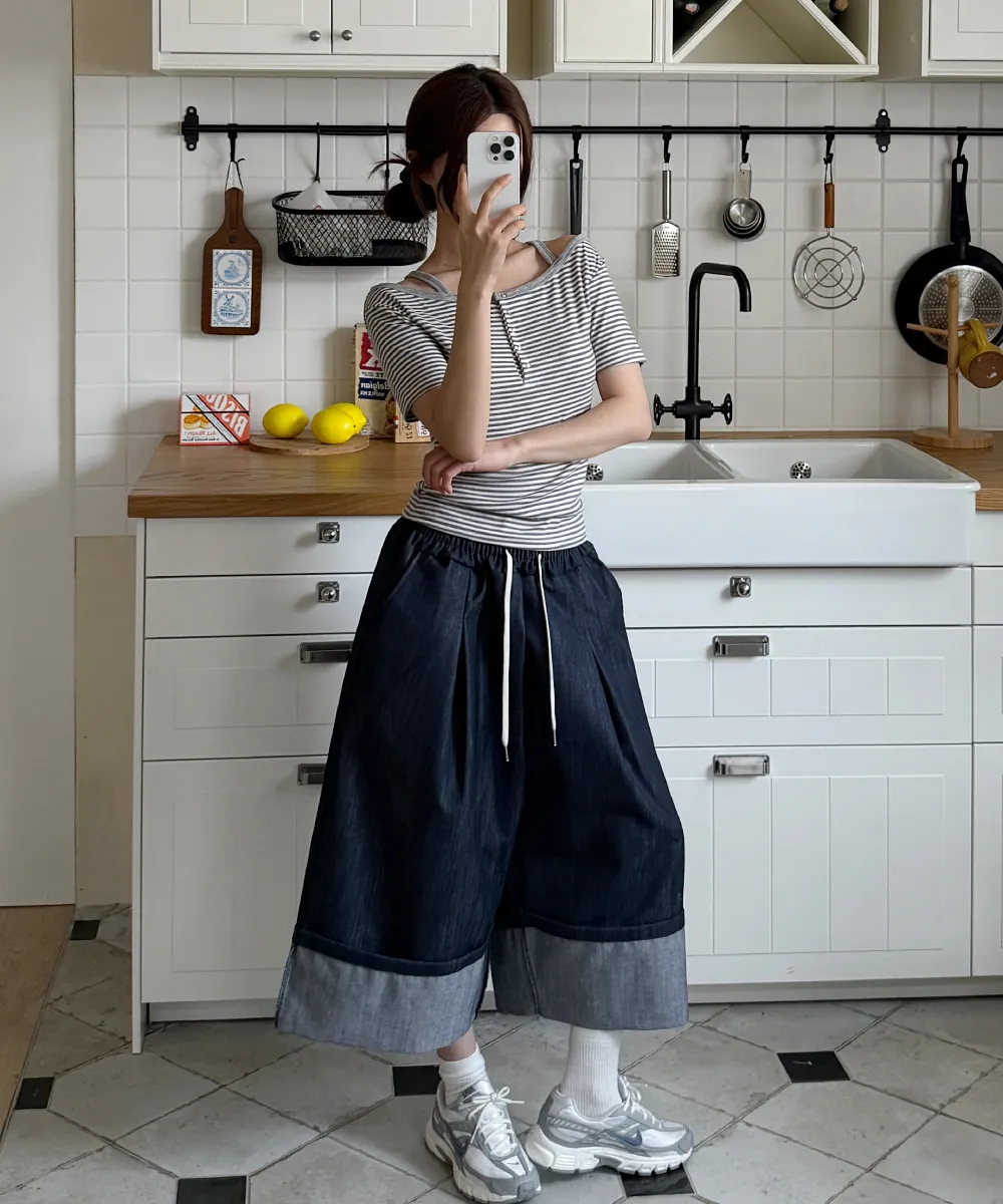 着用 : ディープブルーデニム / FREE,ブラックデニム / FREE