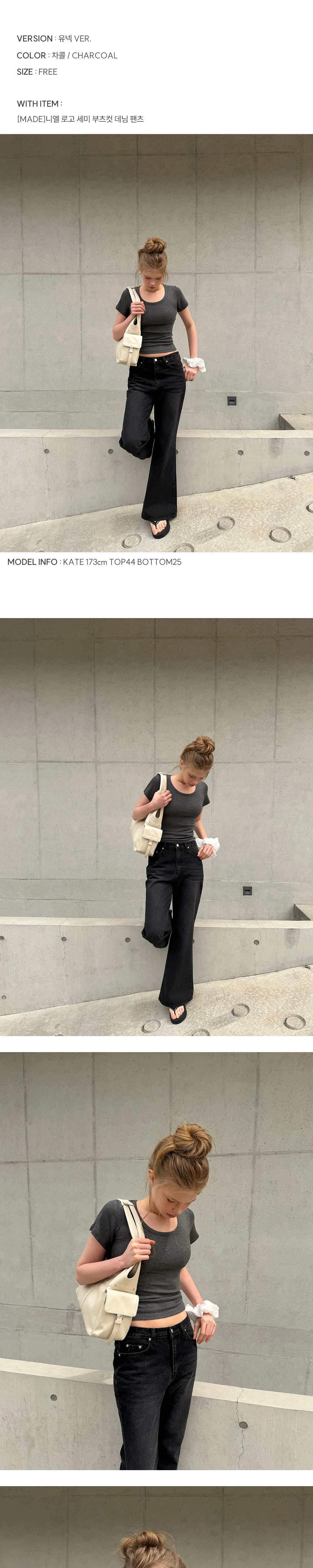 블랙,그레이,차콜,화이트/유넥/FREE/KATE/ 173CM/ TOP44 / BOTTOM25