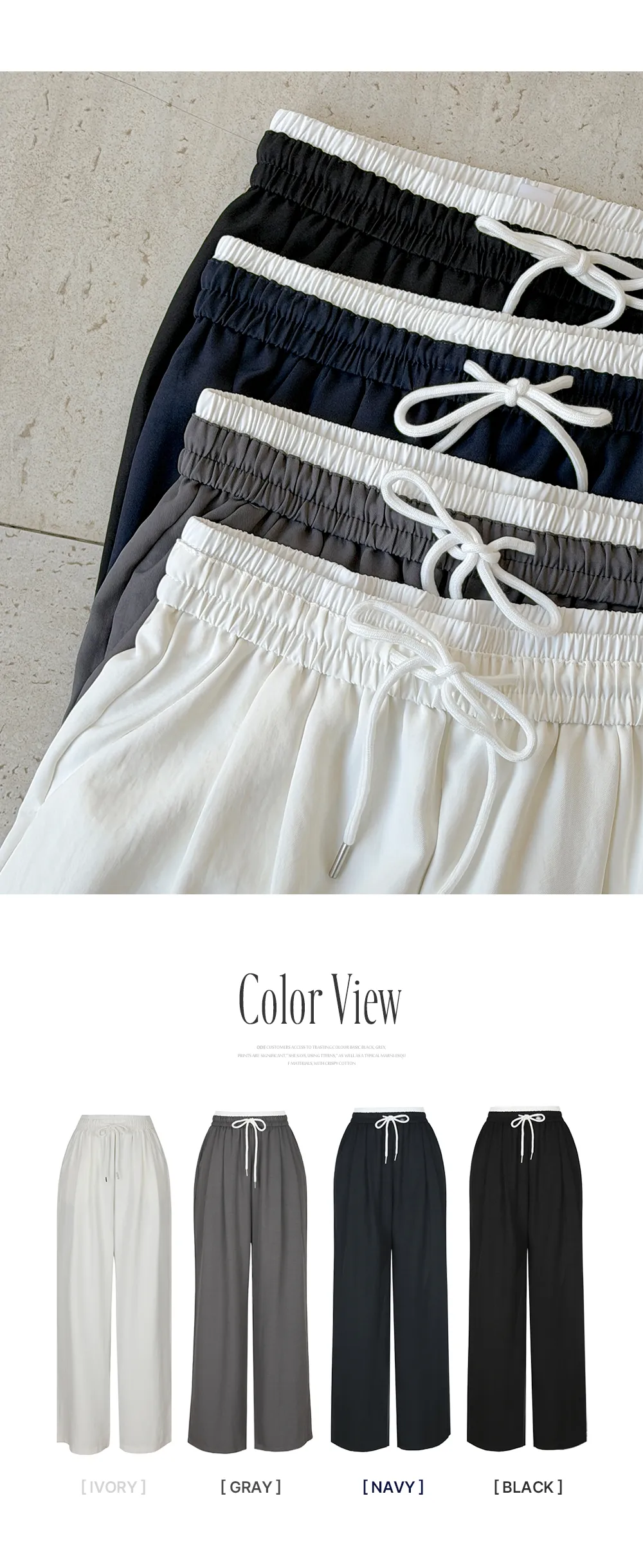| Size | ウエスト | ヒップ | 裾幅 | わたり | 股上 | 着丈 |