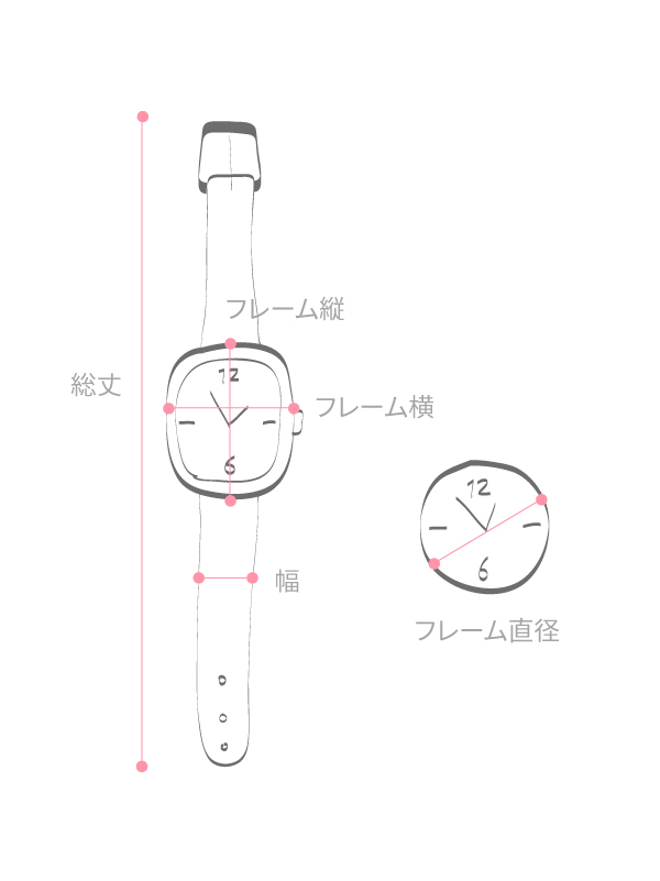 文字盤直径 : 3.4 総丈 : 24 ストラップ幅 : 1.8