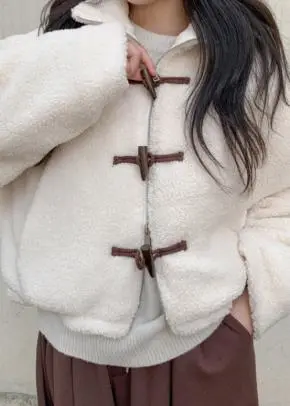 ボアジップアップトグルボタンクロップドドローコードジャンパー