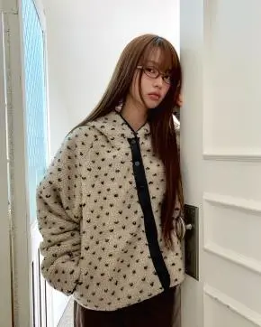 ボアボタンフードリバーシブル配色ドットジャンパー