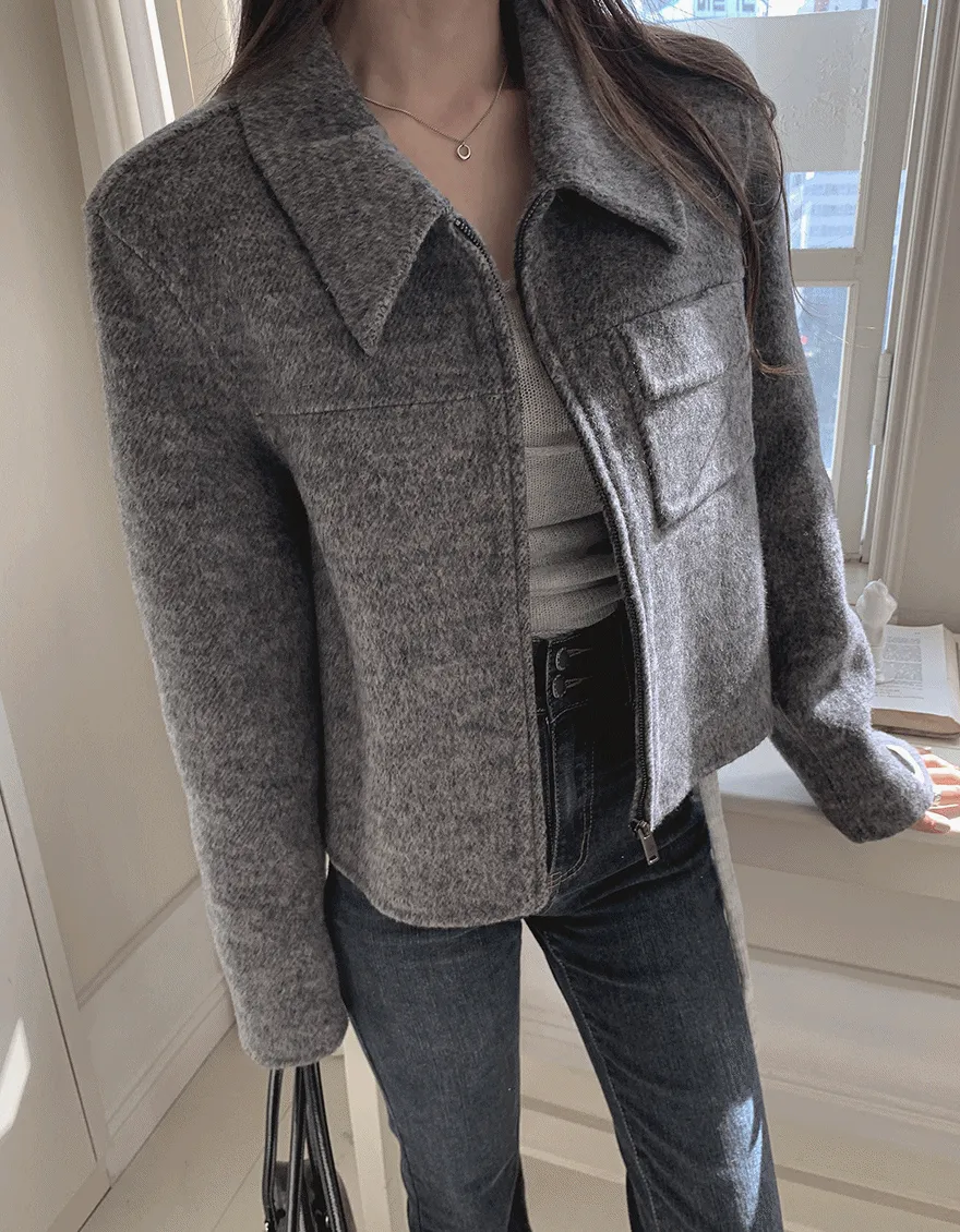 ウール混カラーショートポケットクロップドコート