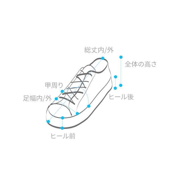 幅 内/外 : 9.0/10.1 総丈 内/外 : 27.2/28.6 ヒール高さ 前/後 : 1.1/2.8 甲周囲 : 16.5 全体高さ : 9.9 重さ : 634g