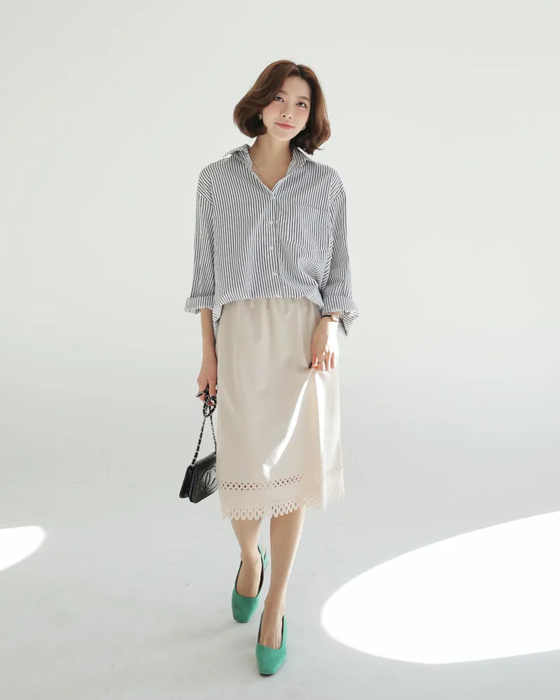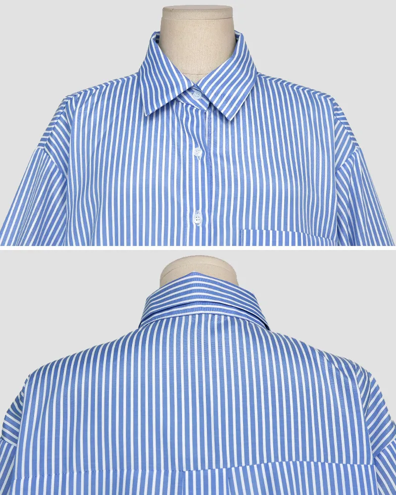 コットンルーズベーシックストライプシャツ