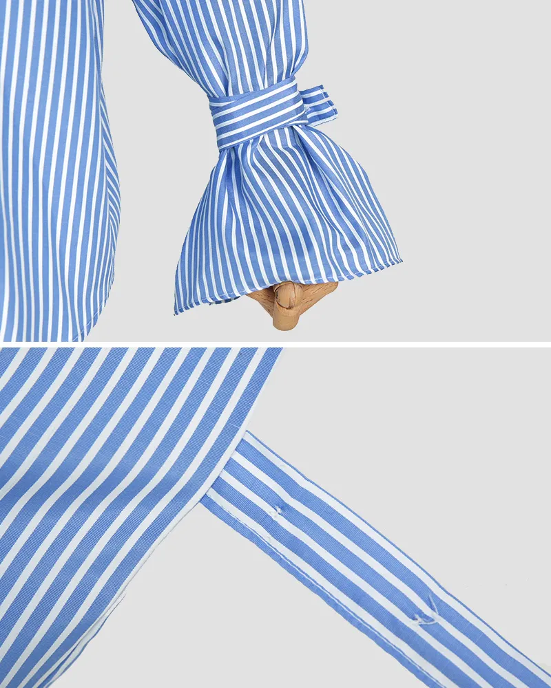 【スリーブタイストライプシャツ】
