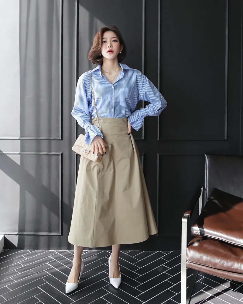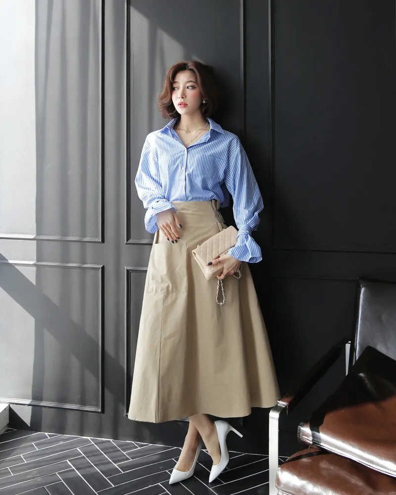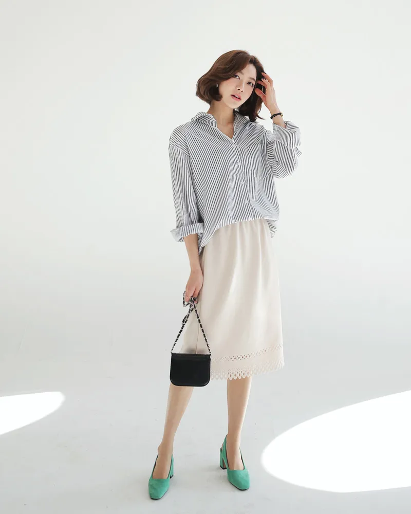 サイドボタンストライプシャツ