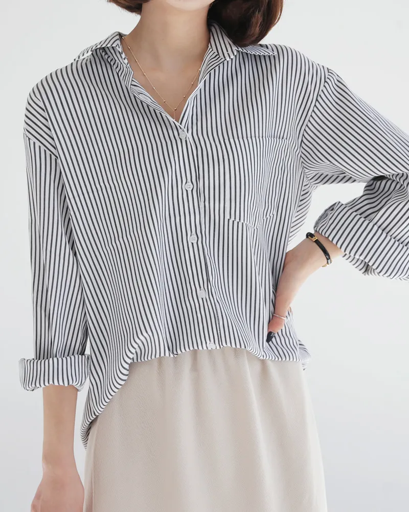 ストライプクロップド長袖シャツ