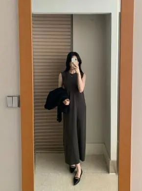 端正な丸首で後ろは開閉が