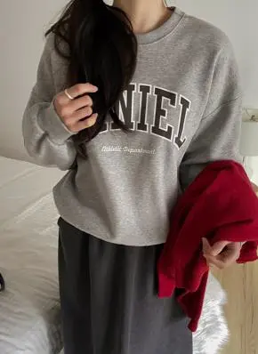 ラウンドネックルーズ長袖レタリングスウェット