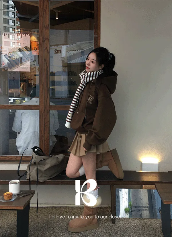裏起毛長袖ルーズフードウォーマー刺繍パーカー